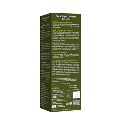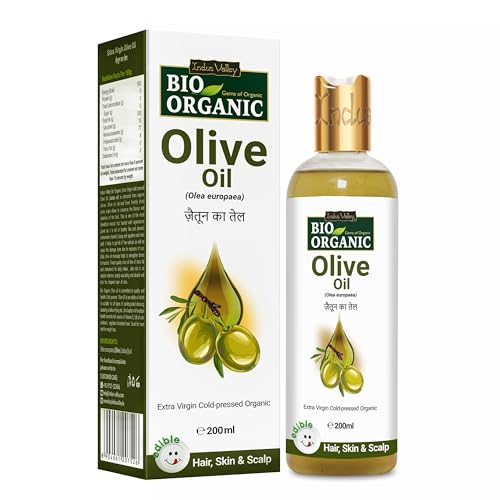 Indus Valley Bio Organic Pure Extra Virgin Edible Cooking Olive 100% Organic and Cold-press, Massage Oil for Baby Skin & Hair Care - (200ml)