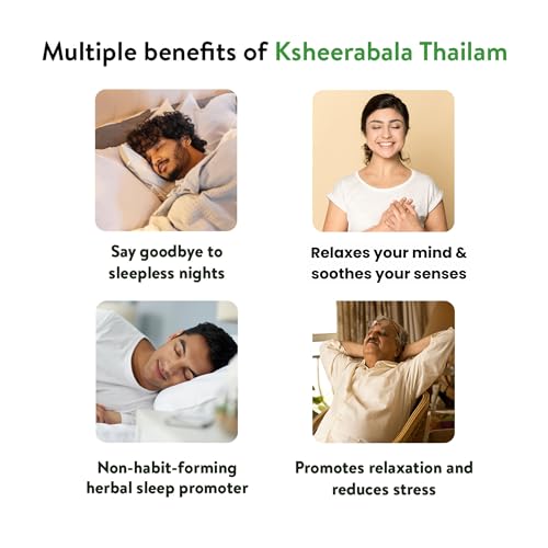 • Non-habit-forming herbal sleep promoter- Wake up feeling refreshed and ready for the day with Kerala Ayurveda's Ksheerabala Thailam. Our herbal sleep support is melatonin-free and non-habit-forming providing safe and effective support for a restful night'