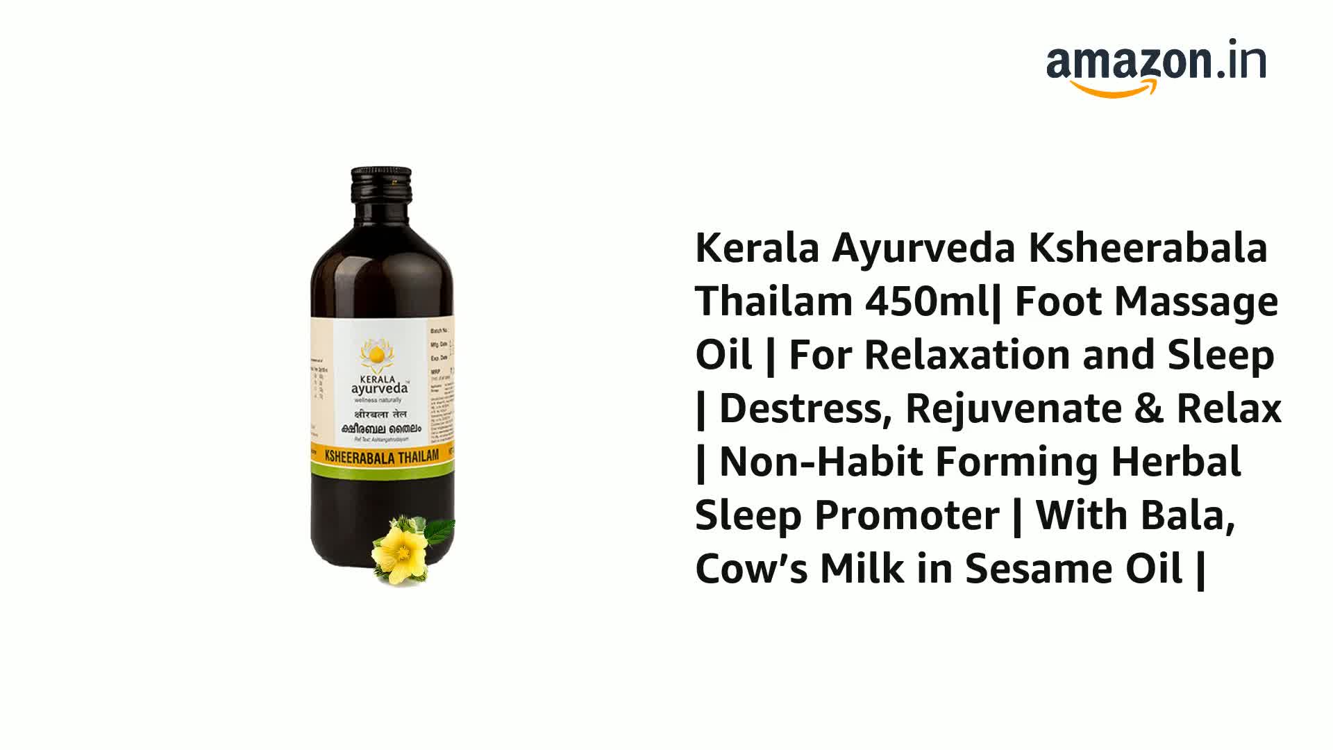 Kerala Ayurveda Ksheerabala Thailam 450ml| Foot Massage Oil | For Relaxation and Sleep | Destress, Rejuvenate & Relax | Non-Habit Forming Herbal Sleep Promoter | With Bala, Cow’s Milk in Sesame Oil |