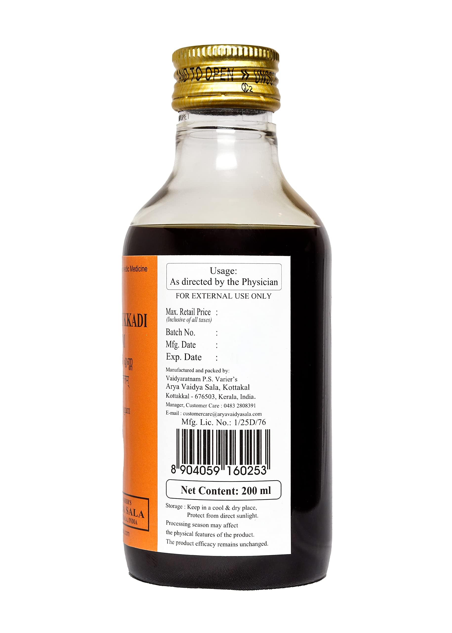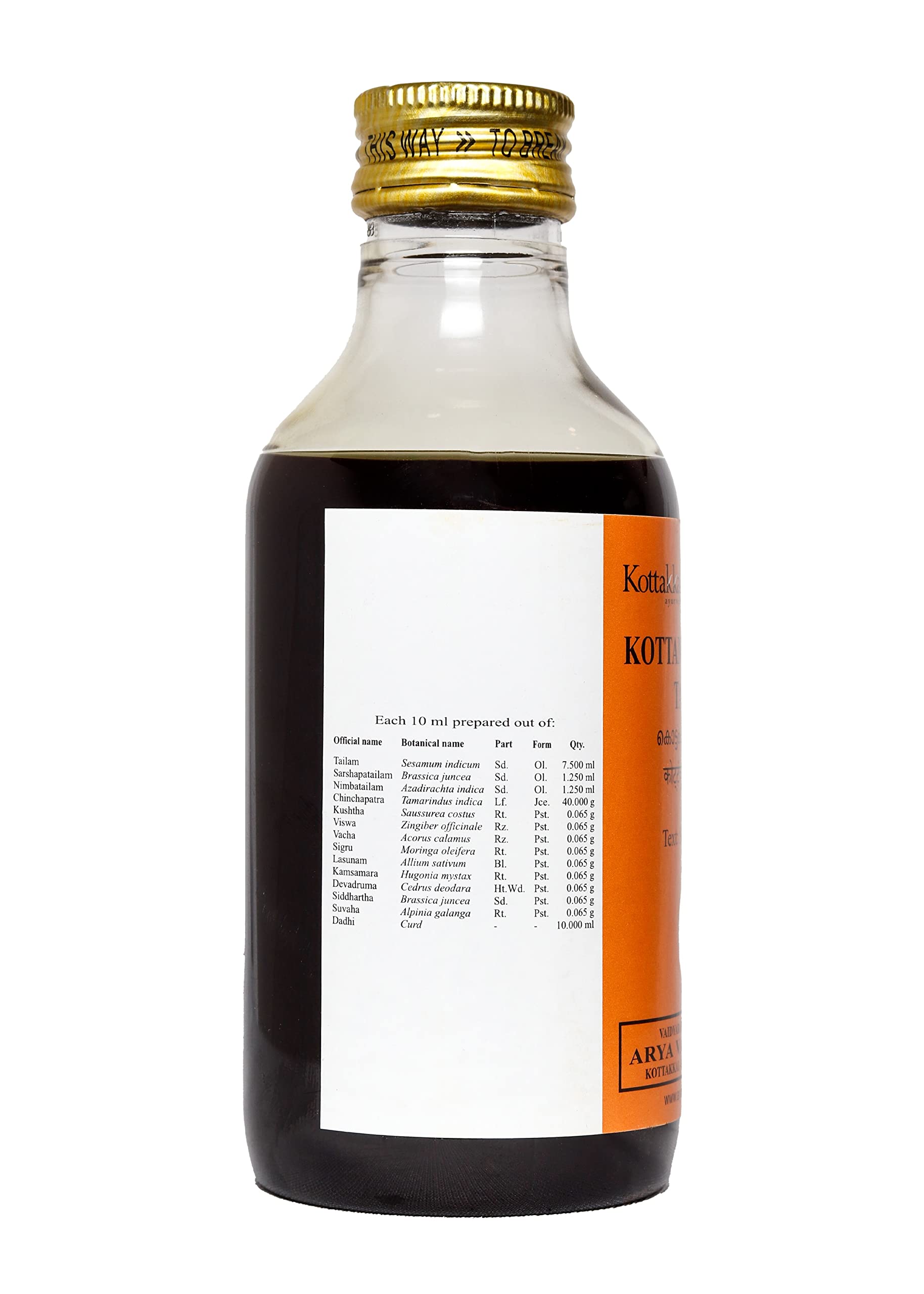 Kottakkal ayurveda Kottamchukkadi Tailam Herbal Massage Oil for Wellness Naturally - Pack of 2 (200 ml Each)