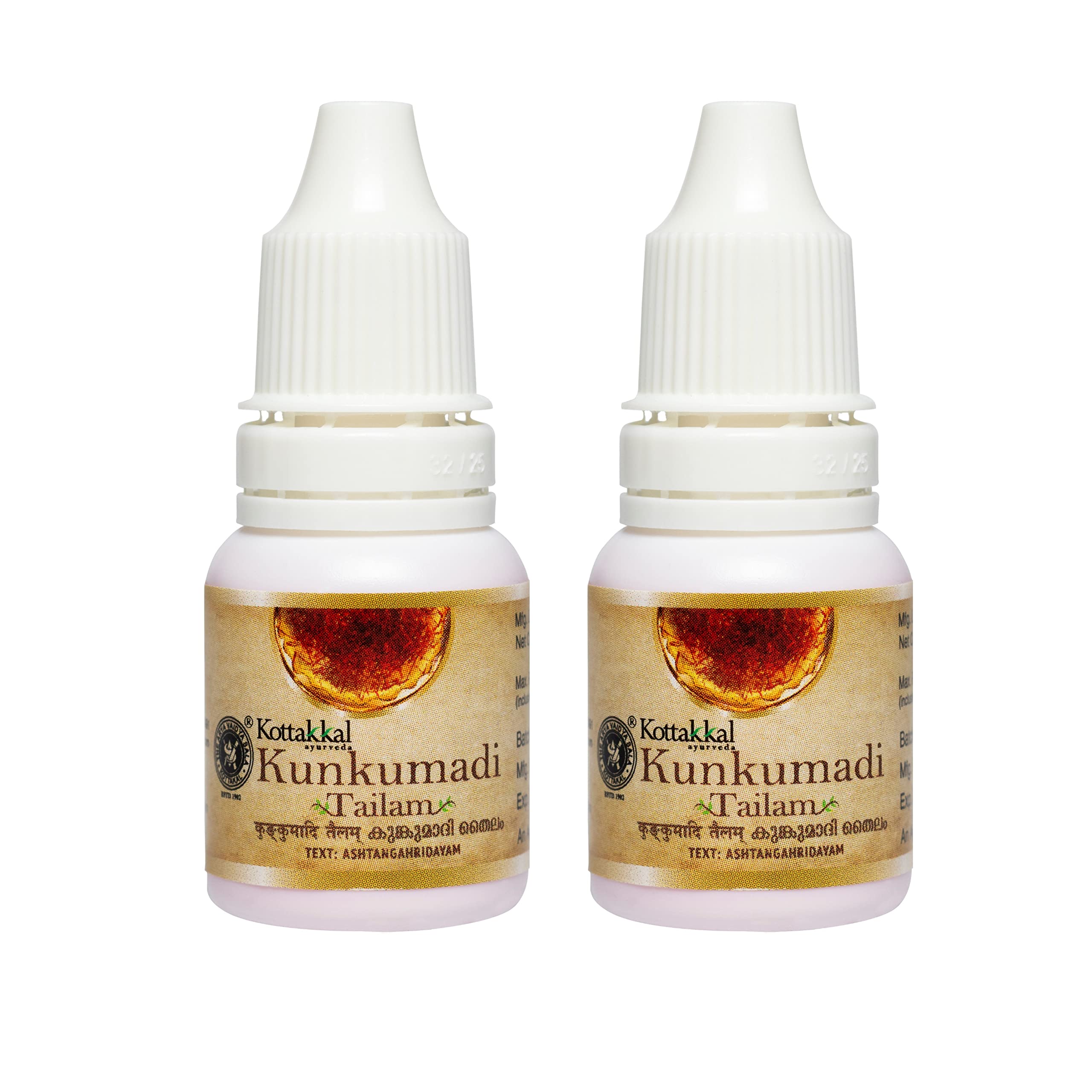 Kottakkal ayurveda Kumkumadi tailam is well-known for its herbal properties. Apply body oil liberally on the affected part and massage gently for 30 minutes to one hour before bath. Oils for hair can be applied on head 30 minutes before bath or as directed by the Physician. For external application as well as nasyam. Gives colour and complexion for the skin. This product is directly from the manufacturer Vaidyaratnam P S Varier's ARYA VAIDYA SALA KOTTAKKAL