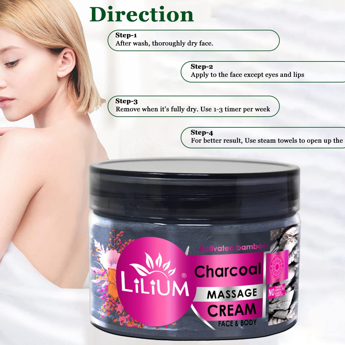 Lilium charcoal cream can penetrate into pores to soften and break down the blackheads and toxin deposition. The unique super suction of charcoal effectively sucks outdirt and grease and helps improve dull skin while locking the moisture in the inner layer of the skin. It cleans and provides smooth and supple skin.