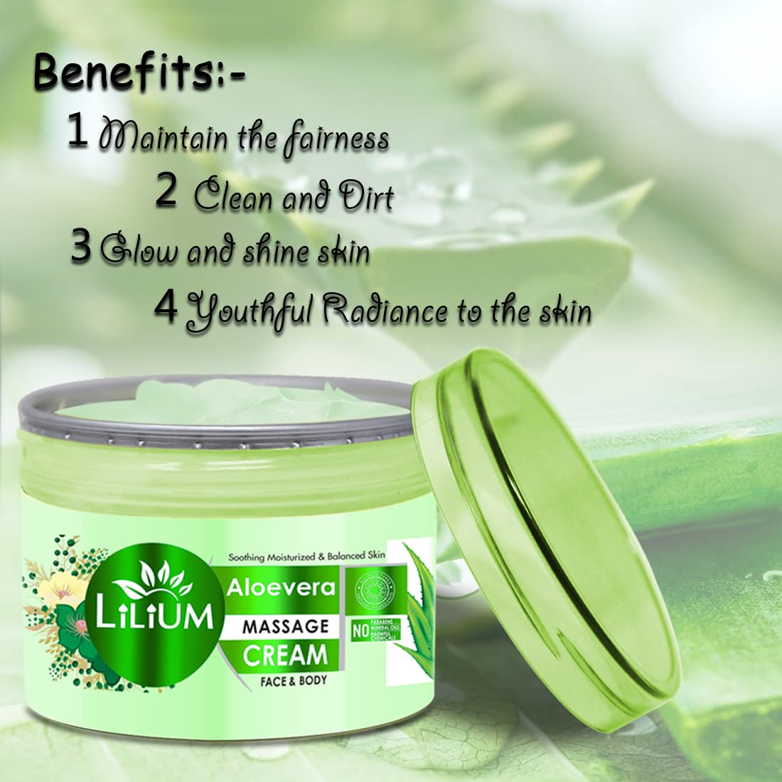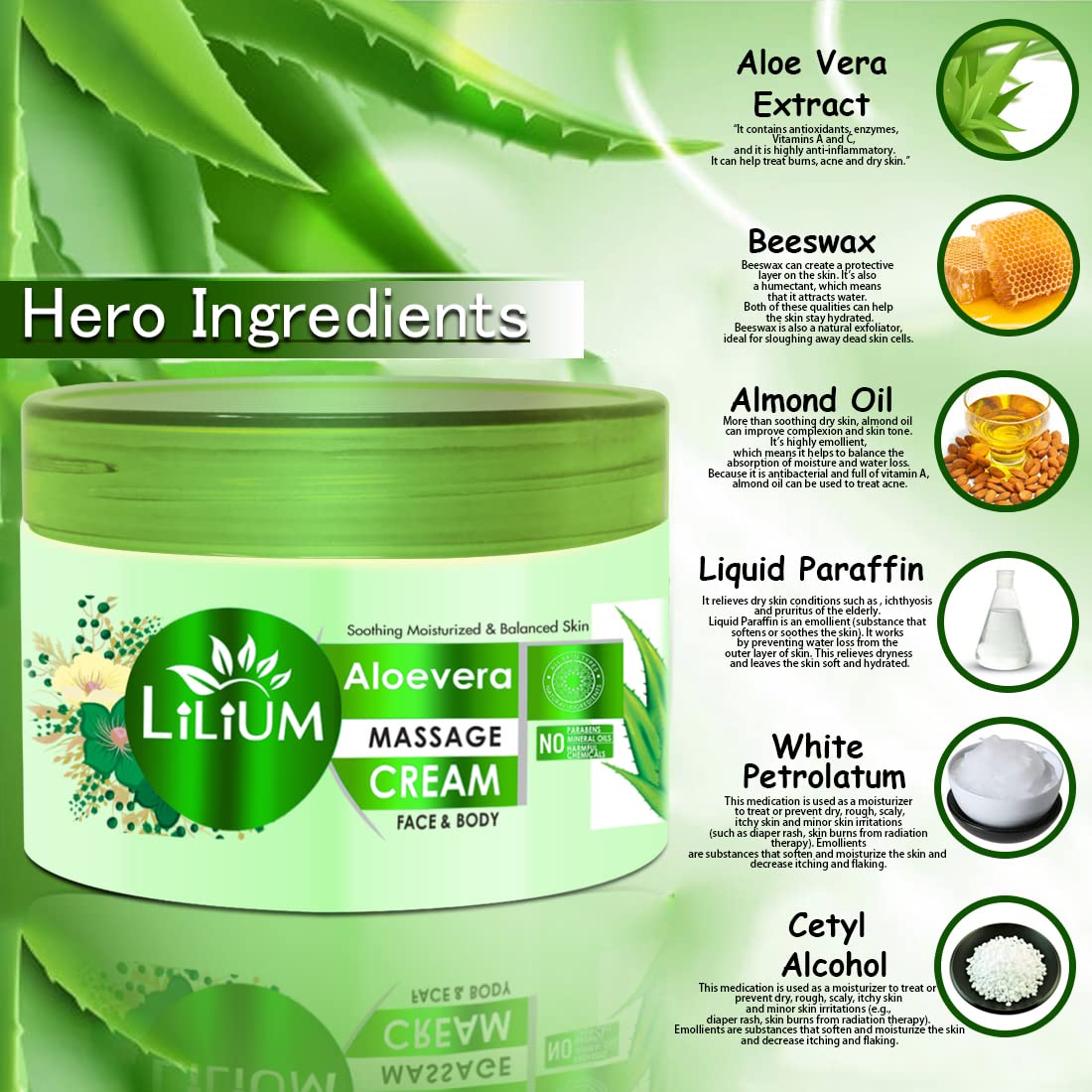 Lilium Aloe Vera Face & Body Massage Cream 250gm Soothing Moisturized & Balanced Skin Promotes Radiant Complexion With Cooling & Calming Effect All Skin Types