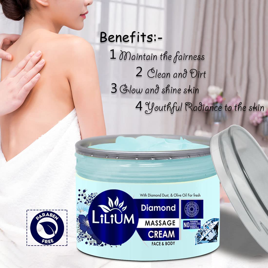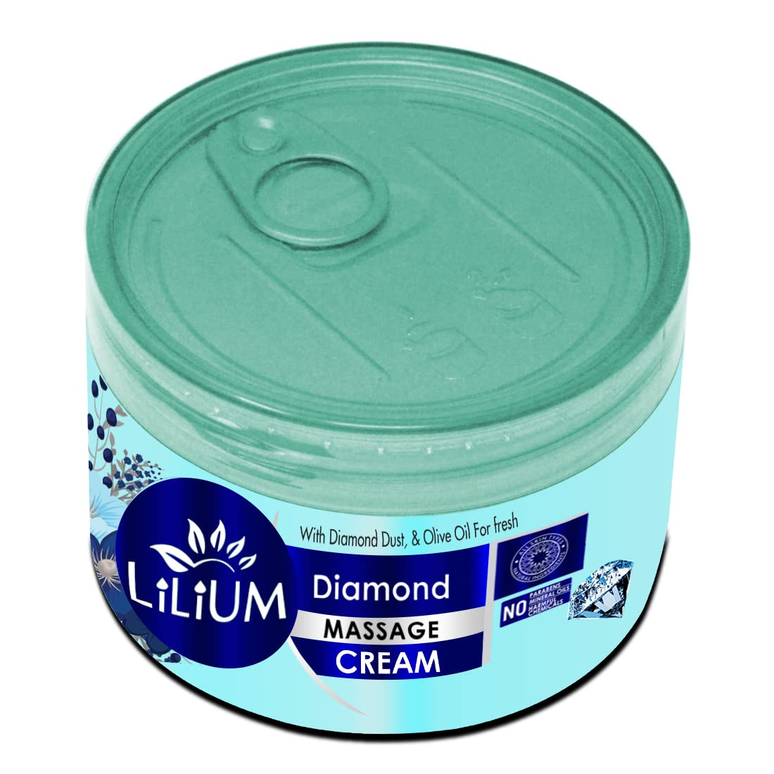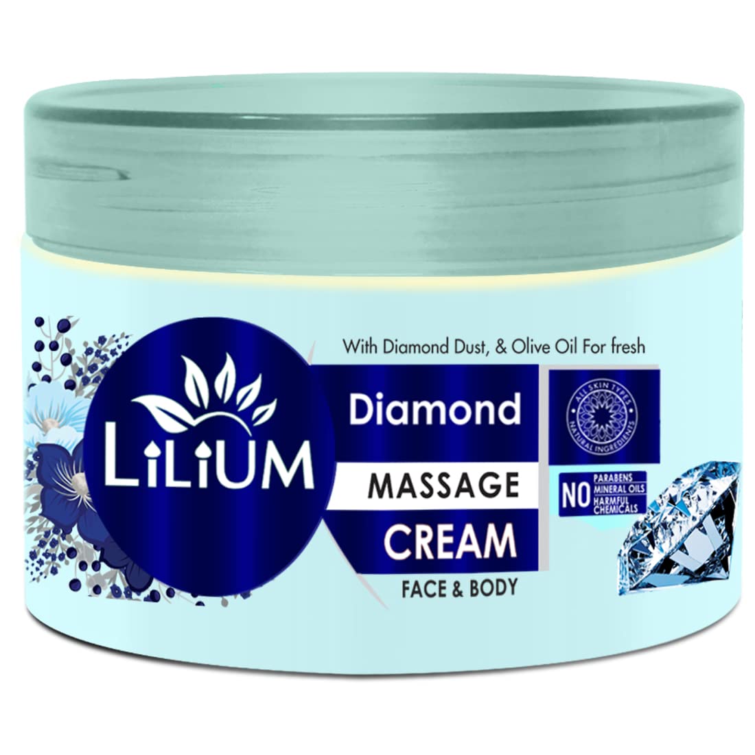 Lilium Diamond Face & Body Massage Cream 250gm With Diamond Dust & Olive Oil Revitalizes Dull Skin Promotes Radiance & Luminosity Non-Greasy Quick Absorption All Skin Types