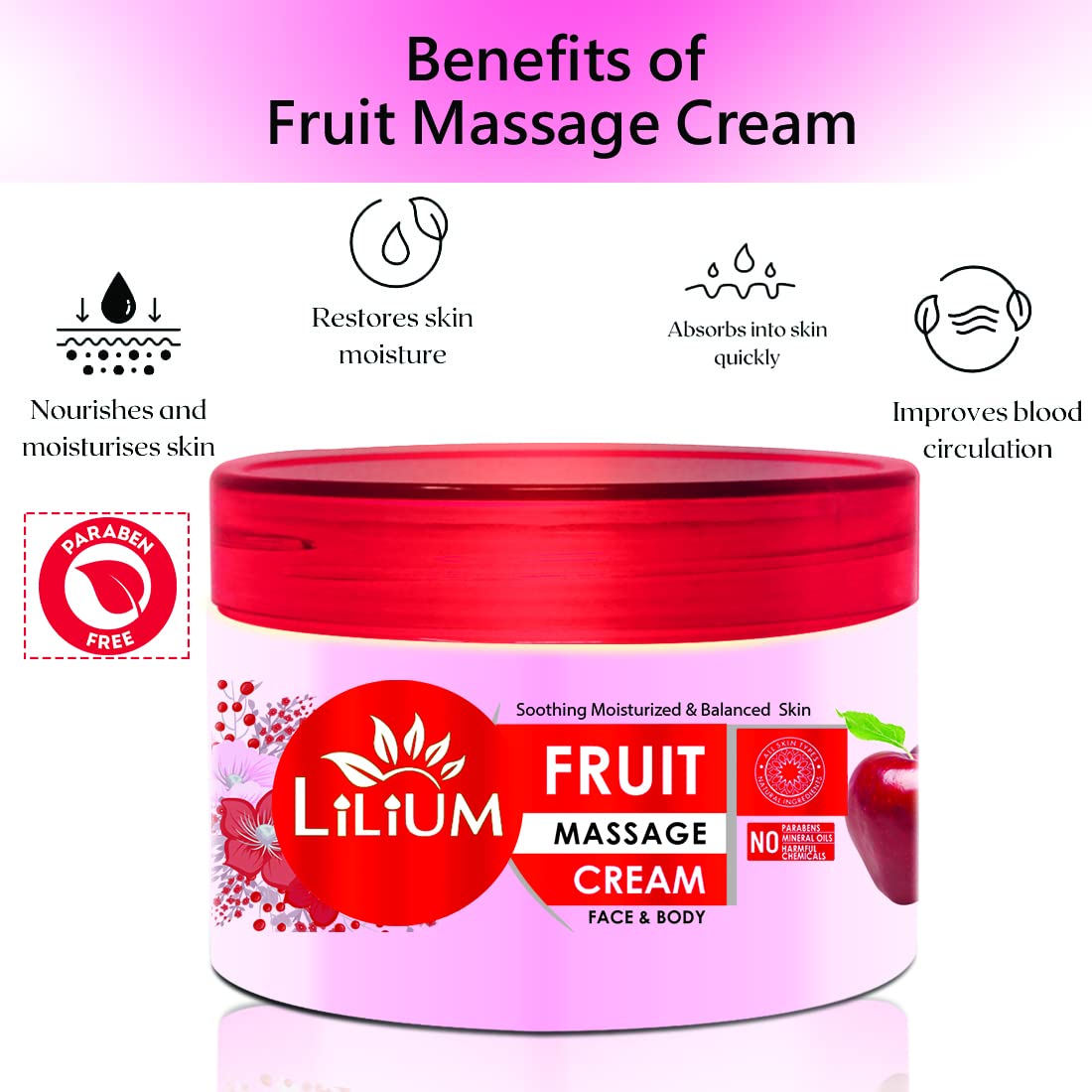 Lilium Fruit Face & Body Massage Cream 250gm Soothing Moisturized & Balanced Skin No Harmful Chemicals Hydration Boost Skin Brightening & Energizing Suitable All Skin Types