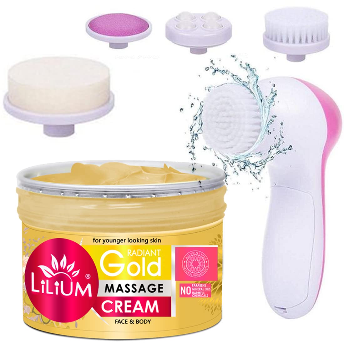 Lilium Gold Face & Body Massage Cream & Multifunction 5in1 Massager (250g)
