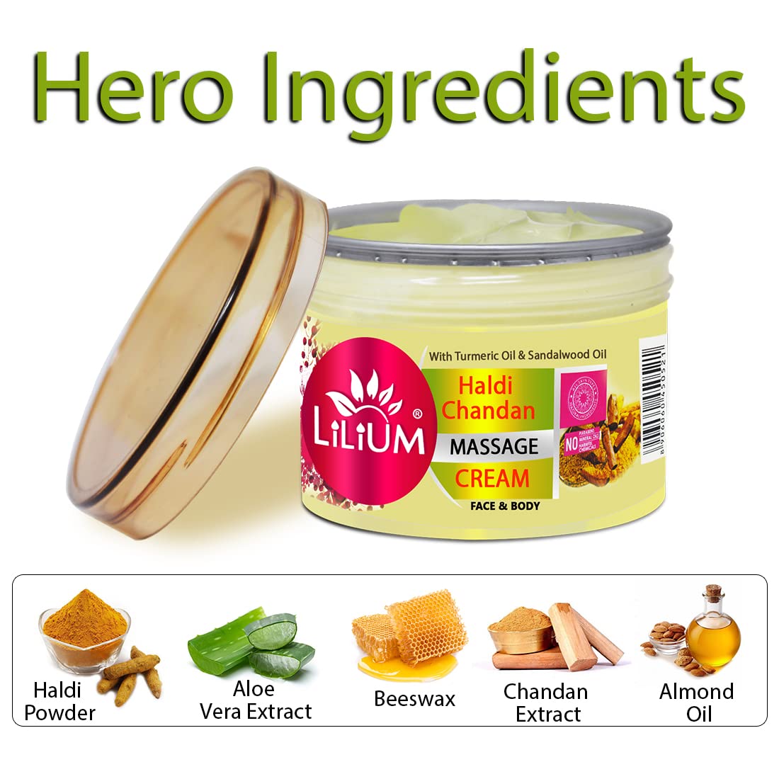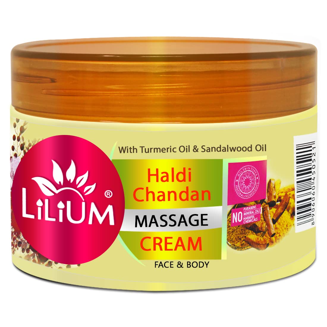 Lilium Haldi Chandan Massage Cream 250gm | Enriched With Turmeric & Sandalwood Oil | Soothing Moistirized & Balanced Skin Paraben Free Anti-Inflammatory Suitable for All Skin Types