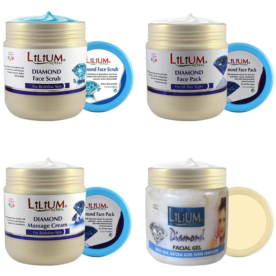 Good Choice India provides you 100% genuine & brand new product..Diamond Massage Cream Typincally created with diamond dust. Massage cleanser to clear out dirt. It lifts away pore clogging dust and excess oil. Makes skin clean smooth and healthy looking and get fresh and flawless fairer skin. Direction: Wash your face with water apply all purpose revatalize cream and massage skin with upward circular moton for about 2 min. Avoid eye area Rise and pat dry. used twice in a week. Ingredients: Diamond Dust Honey Stearic Acid Cetyl Alcohol P.G TEA Iso propyl miristrate bees wax. Net Weight: 500ml