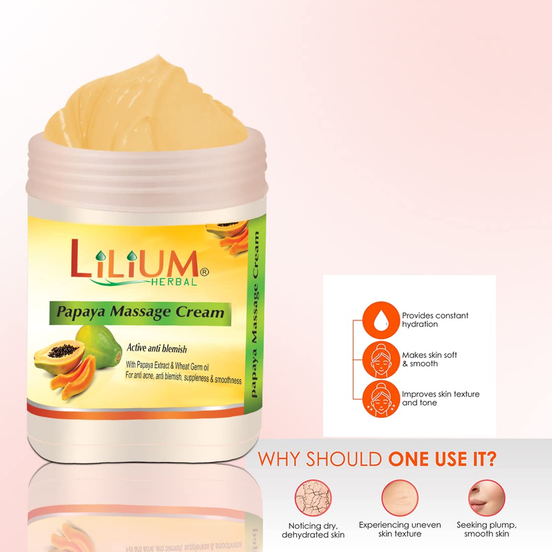 Introducing Lilium Herbal Papaya Massage Cream Enriched with the natural goodness of papaya extract and a blend of soothing herbal ingredients this massage cream is designed to elevate your massage session to a whole new level of relaxation and skincare