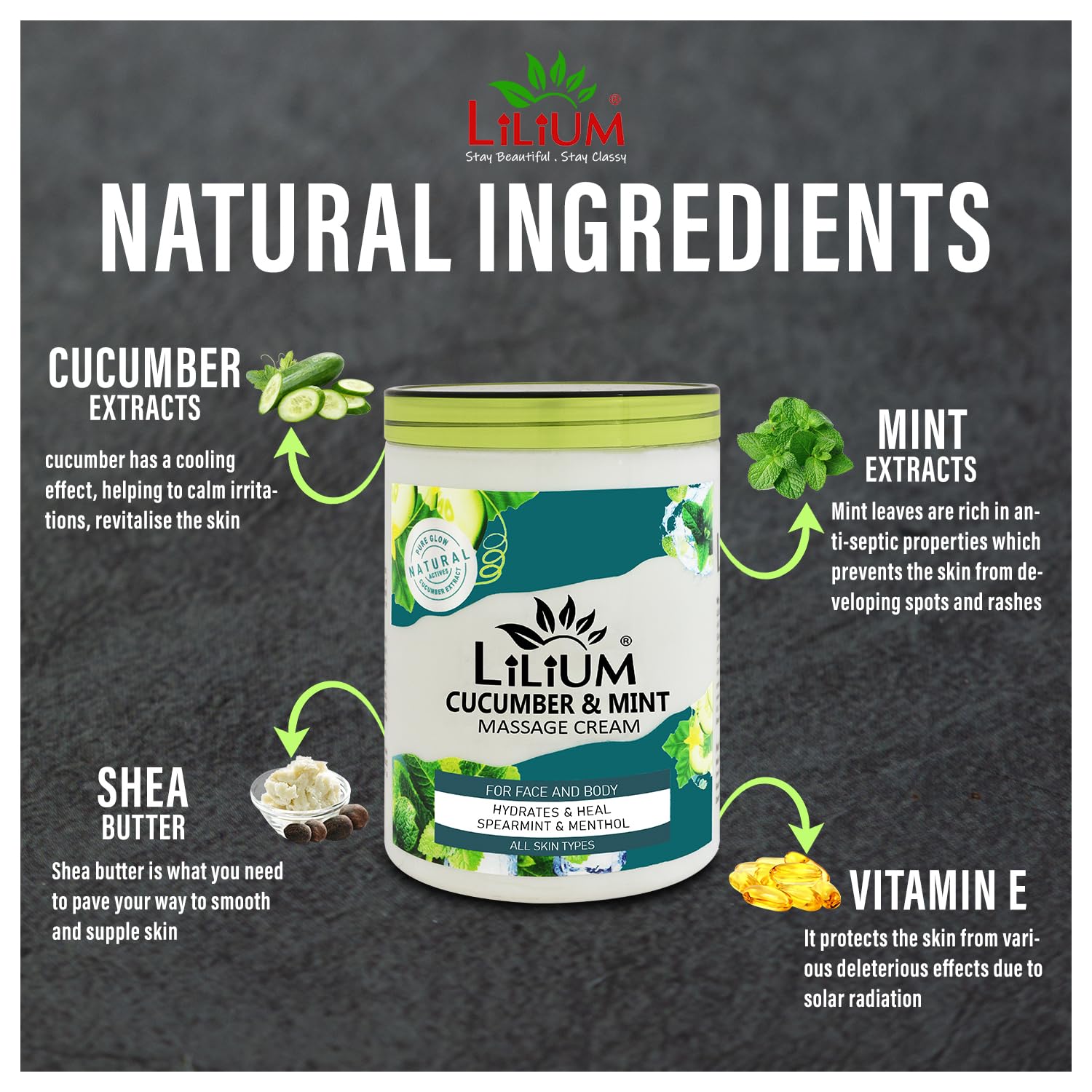Cucumber & Mint Massage Cream is a skincare product that combines the refreshing properties of cucumber and the soothing essence of mint to provide a rejuvenating and hydrating massage experience. This carefully crafted massage cream offers a multitude of benefits making it an ideal choice for those seeking relaxation and skin nourishment.