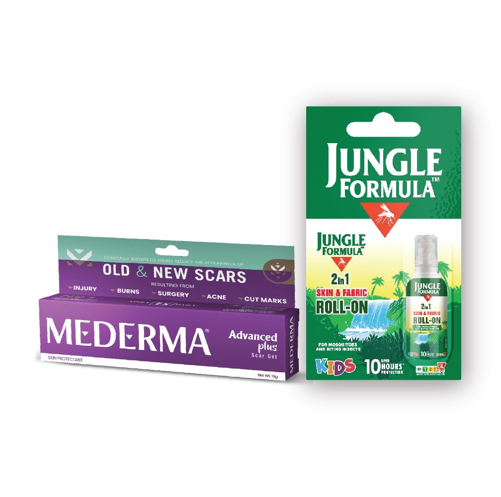 MEDERMA Advanced Plus for Scar (10g) & Jungle Formula 2 in 1 Skin & Fabric ROLL-ON For Mosquitos & Insects 10ML (Combo)