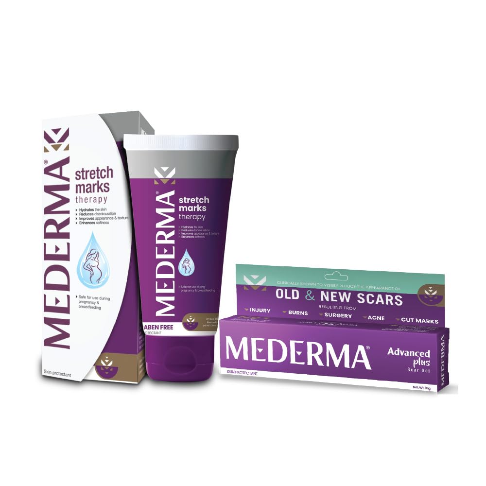 MEDERMA Stretch Mark Removal Therapy 50g & Advance Plus Scar Removal Gel 10g Combo