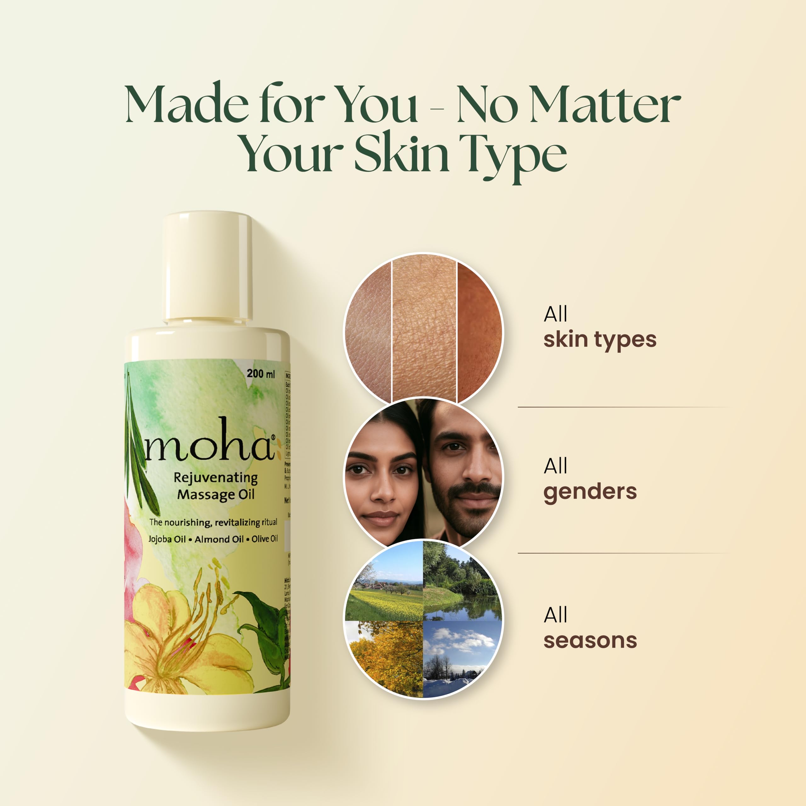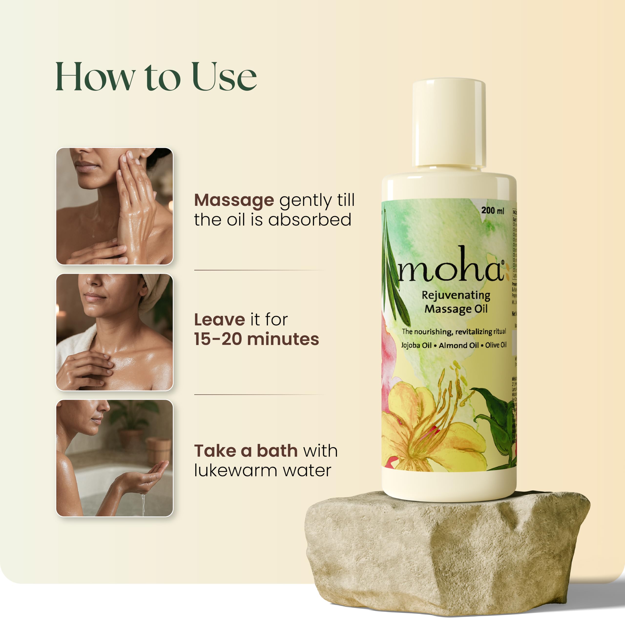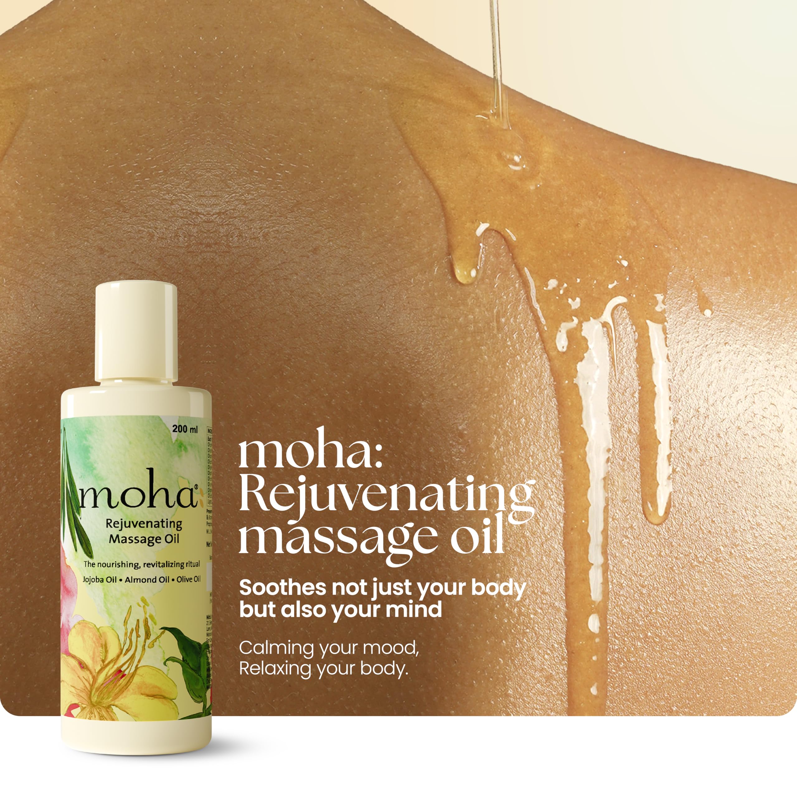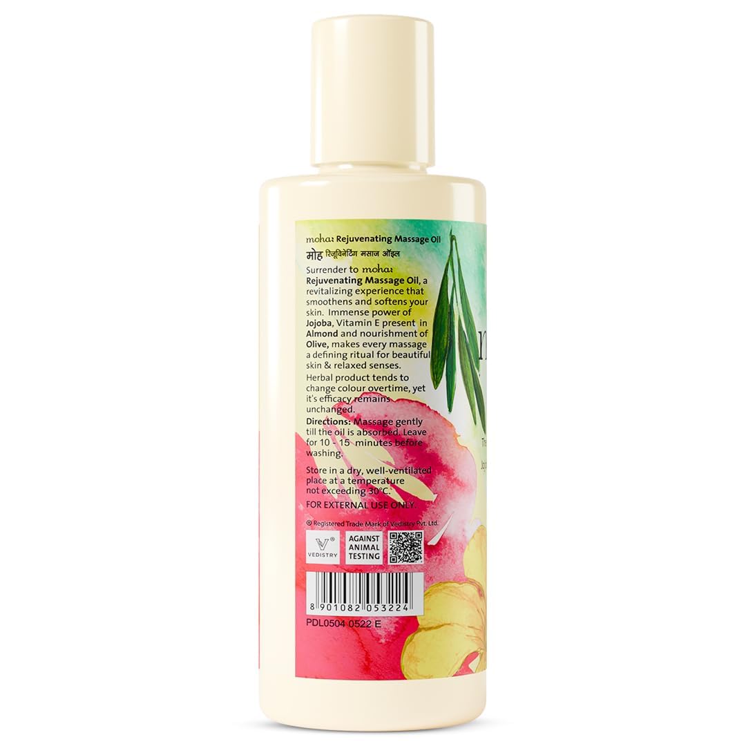 Moha: Herbal Rejuvenating Massage Oil with Jojoba Oil Almond Oil and Olive Oil For De-stresses and Tones the Skin -200ml (Pack of 1)