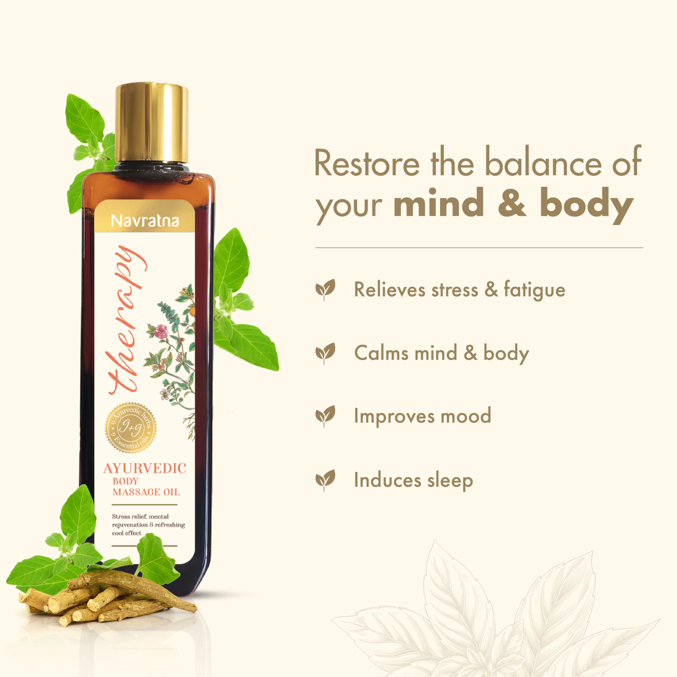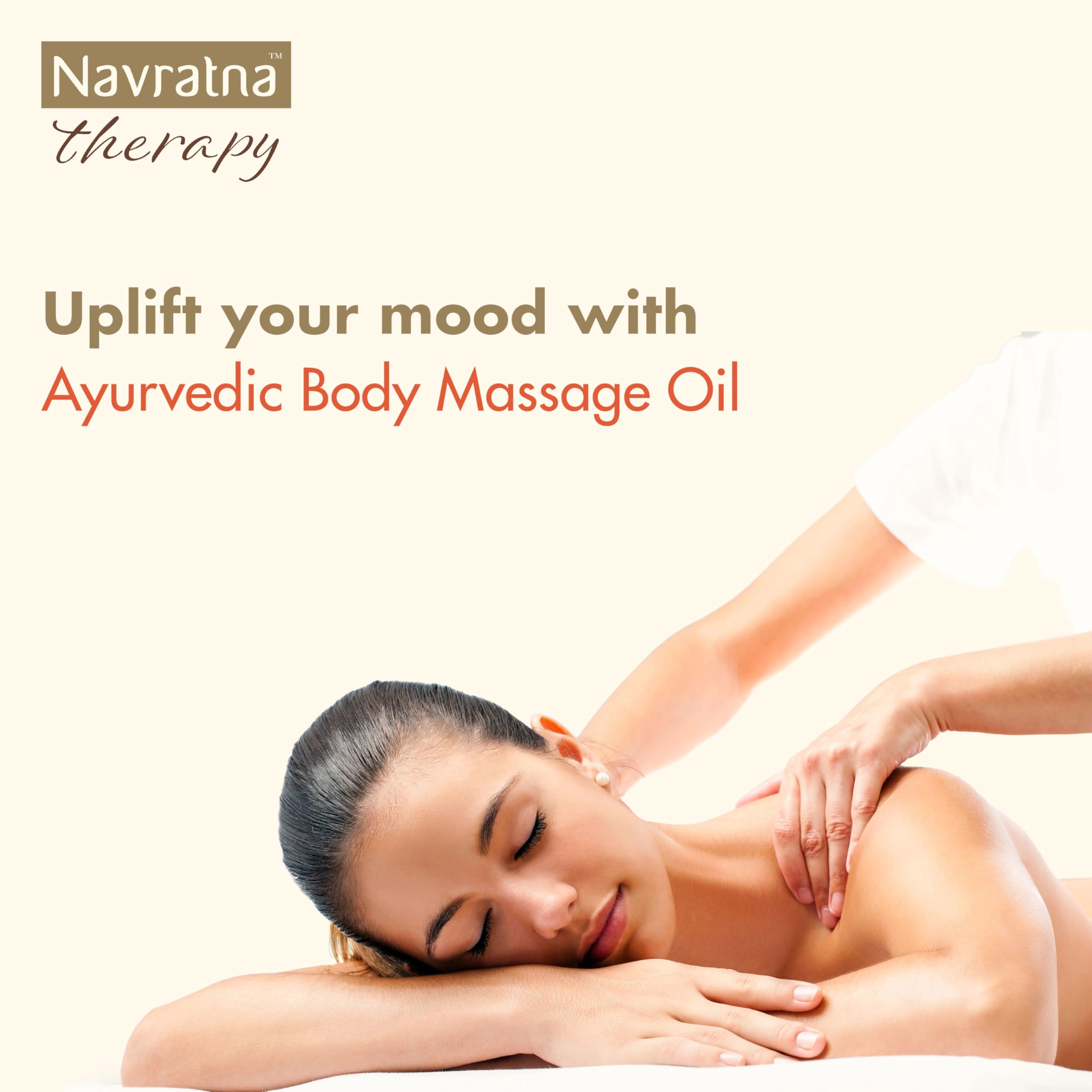 Navratna Therapy Ayurvedic Body Massage Oil | With Ashwagandha & Orange Oil for Stress Relief & Rejuvenation | Aromatherapy Oil for relieving fatigue | Mood Uplifting | Relaxing Massage Oil for Full Body | For Women & Men 200ml