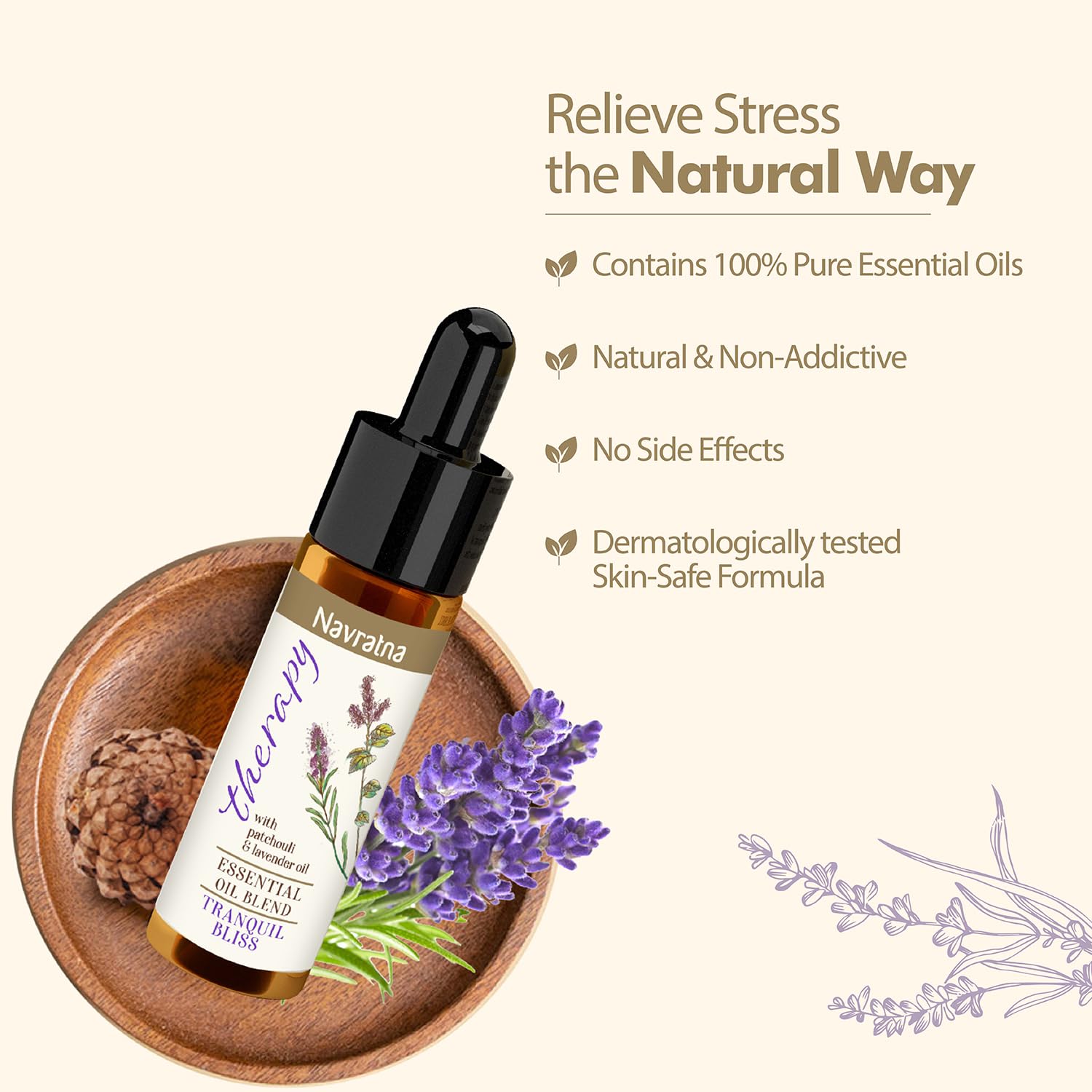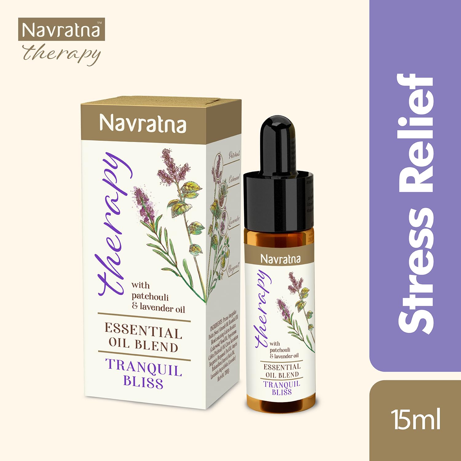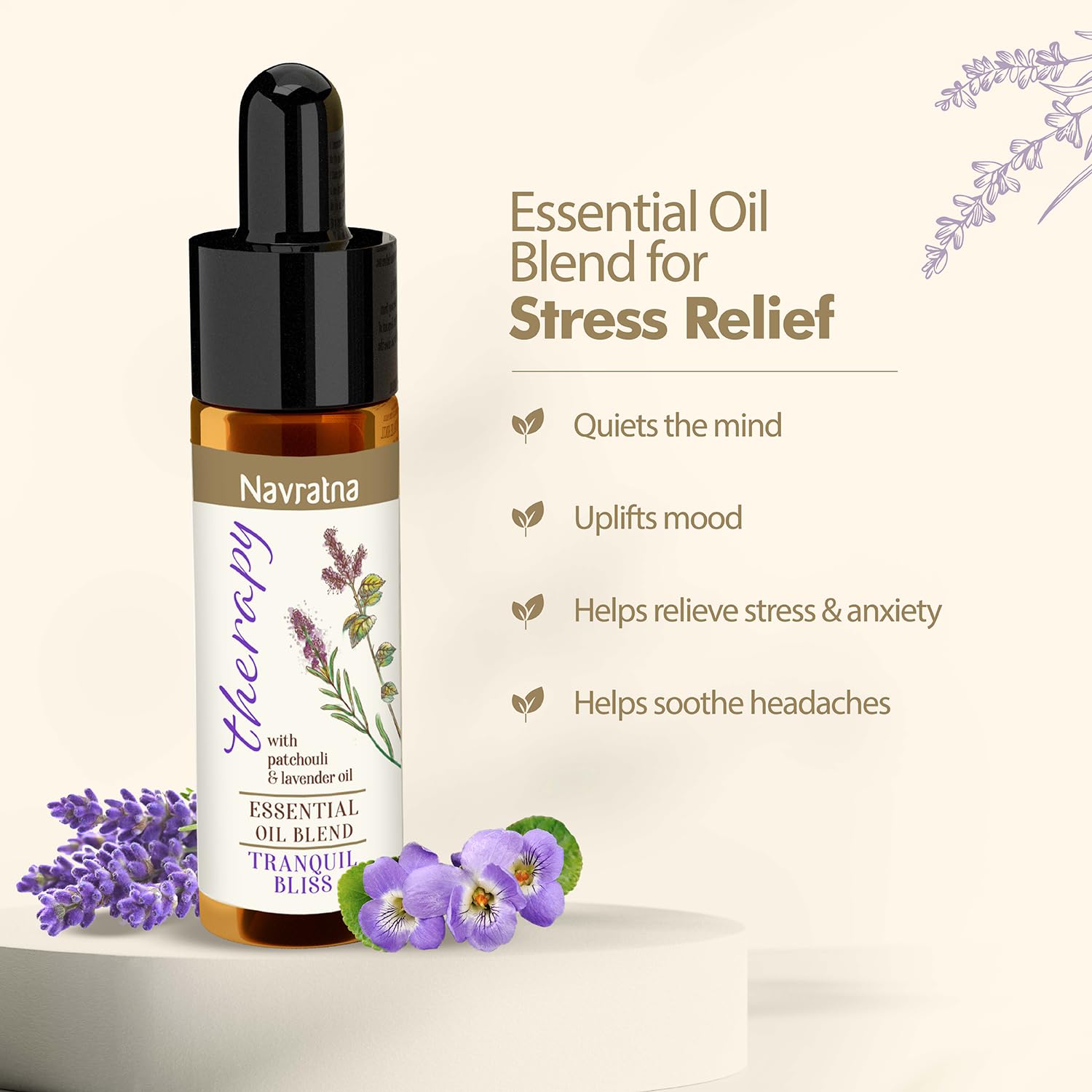 Navratna Therapy Tranquil Bliss Essential Oil Blend | Lavender & Patchouli | Calms Mind & Reduces Stress | Aromatherapy Oil for Relaxation 15 ml