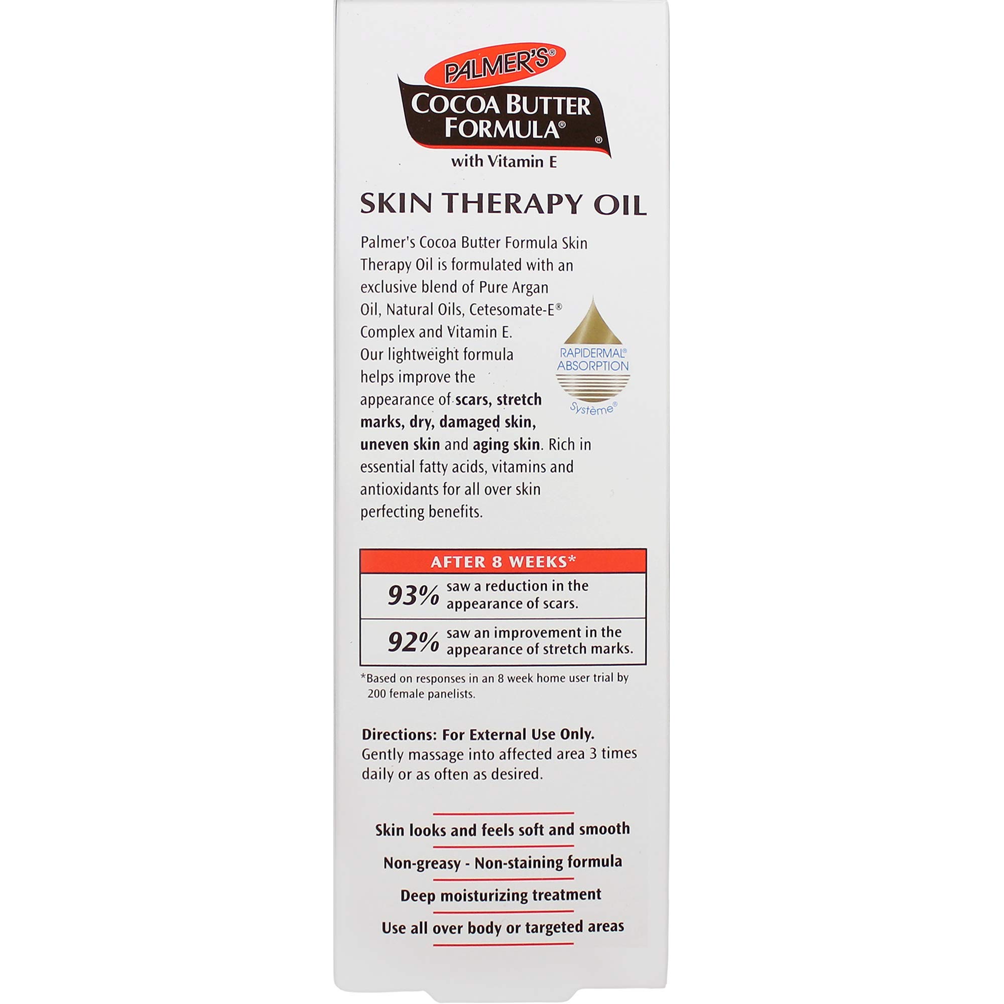 Palmer's cocoa butter skin therapy oil is an advanced multi-purpose skin perfection product that can be used all over the body including face. Helps improve the appearance of scars stretch marks dry damaged skin uneven skin tone aging skin and fine lines and wrinkles.