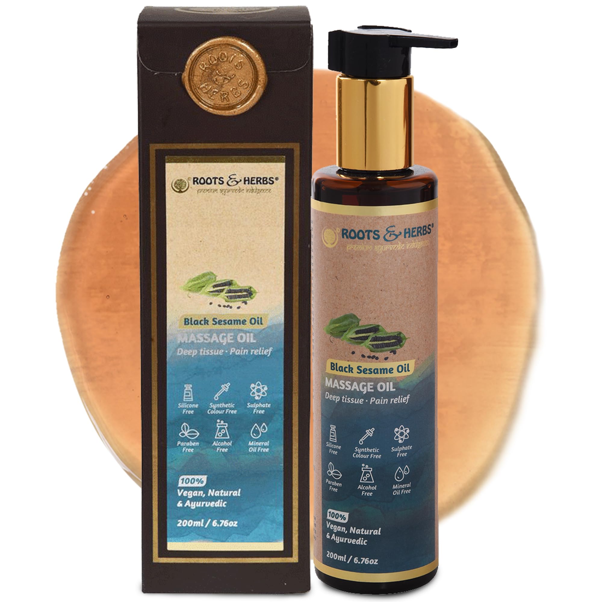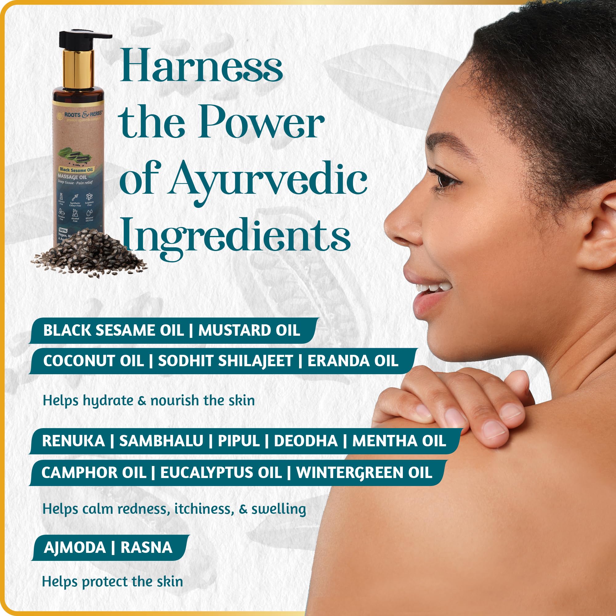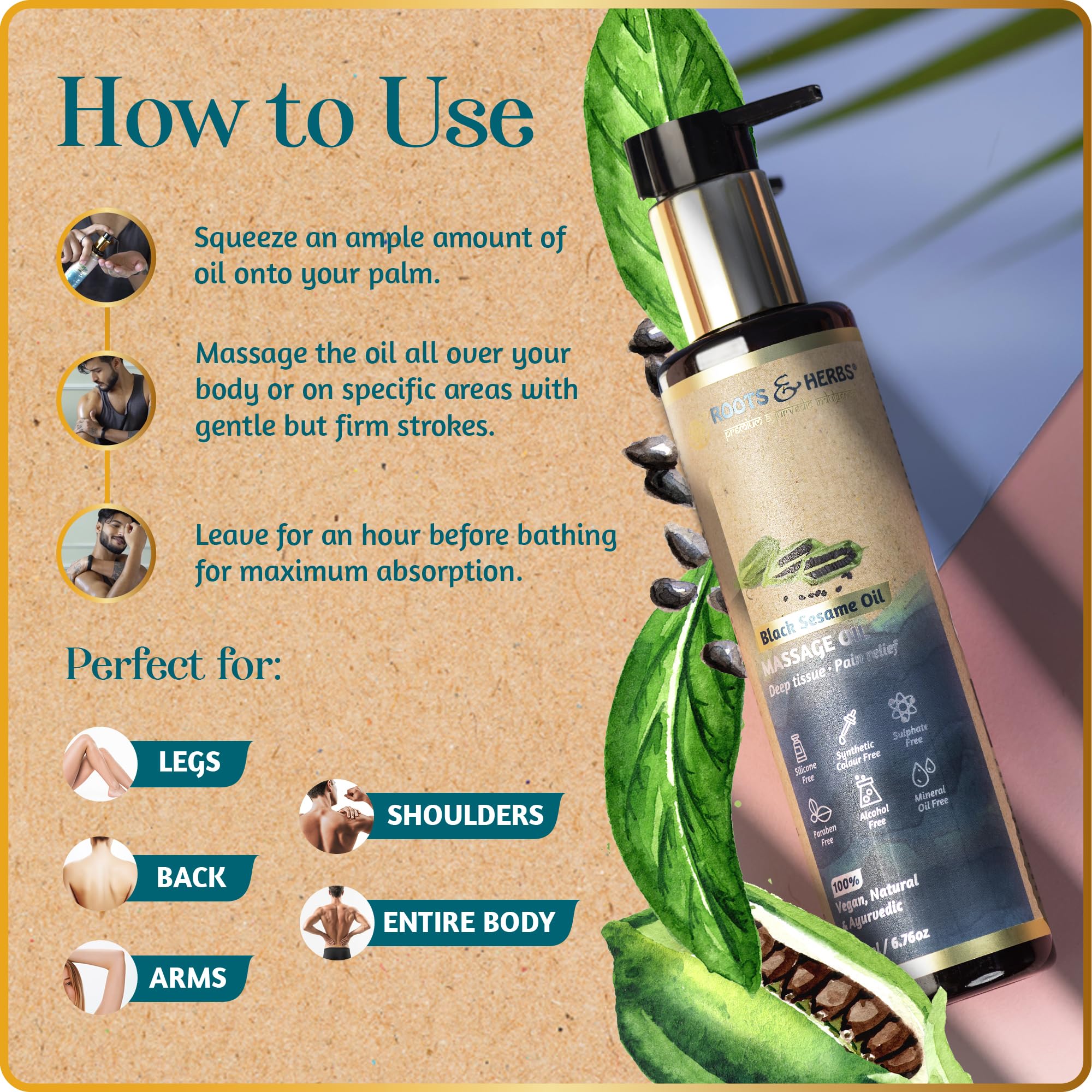 ROOTS AND HERBS Black Sesame Massage Oil - Body Oil Massage oil for massage therapy Massage Lotion Warming Massage Oil Massage Oil Warmer Massage Oils organic massage oil Massage Oil for Couples Skin