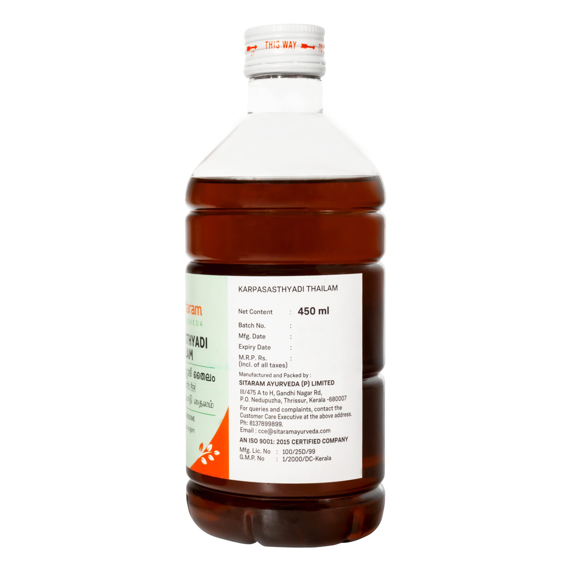 Karpasasthyadi thailam is a nourishing vata-balancing formula. It is indicated for pacifying all kinds of vata derangement in the body with a special affinity to degenerative signs in the shoulder joint. A competent osteomuscular system is the key to a functional and energetic body. Vata dosha is aggravated by a number of factors like faulty diet lifestyle climatic conditions or simply ageing. This vata-derangement manifests as dryness roughness degeneration in the body especially the se and joints. Regular abhyanga with vata alleviating taila keeps these symptoms in check. It calms the body and invigorates the senses. fortified with the nourishing and vata-balancing properties of Karpasasthi (Seed of Gossypium hirsuitum) Bala (Sida cordifolia) Masha (Vigna mungo) Kulattha (Macrotyloma uniflorum) Devadaru (Cedrus deodara) Rasna (Alia galanja) Kushta (Saussurea costus) Shatahwa (Anethum sowa) Sigru (Moringa oleifera) Punarnava (Boerrhavia diffusa) etc.