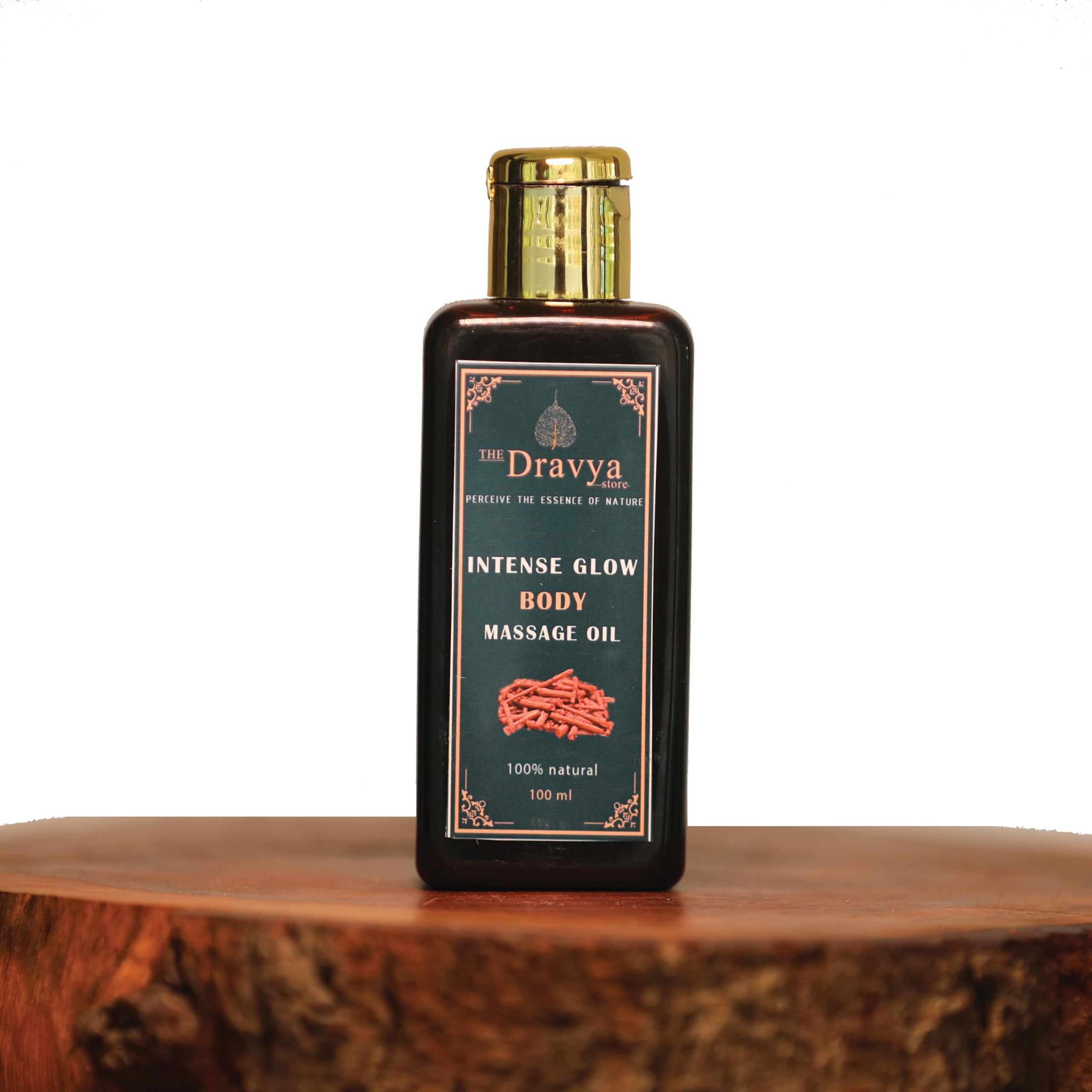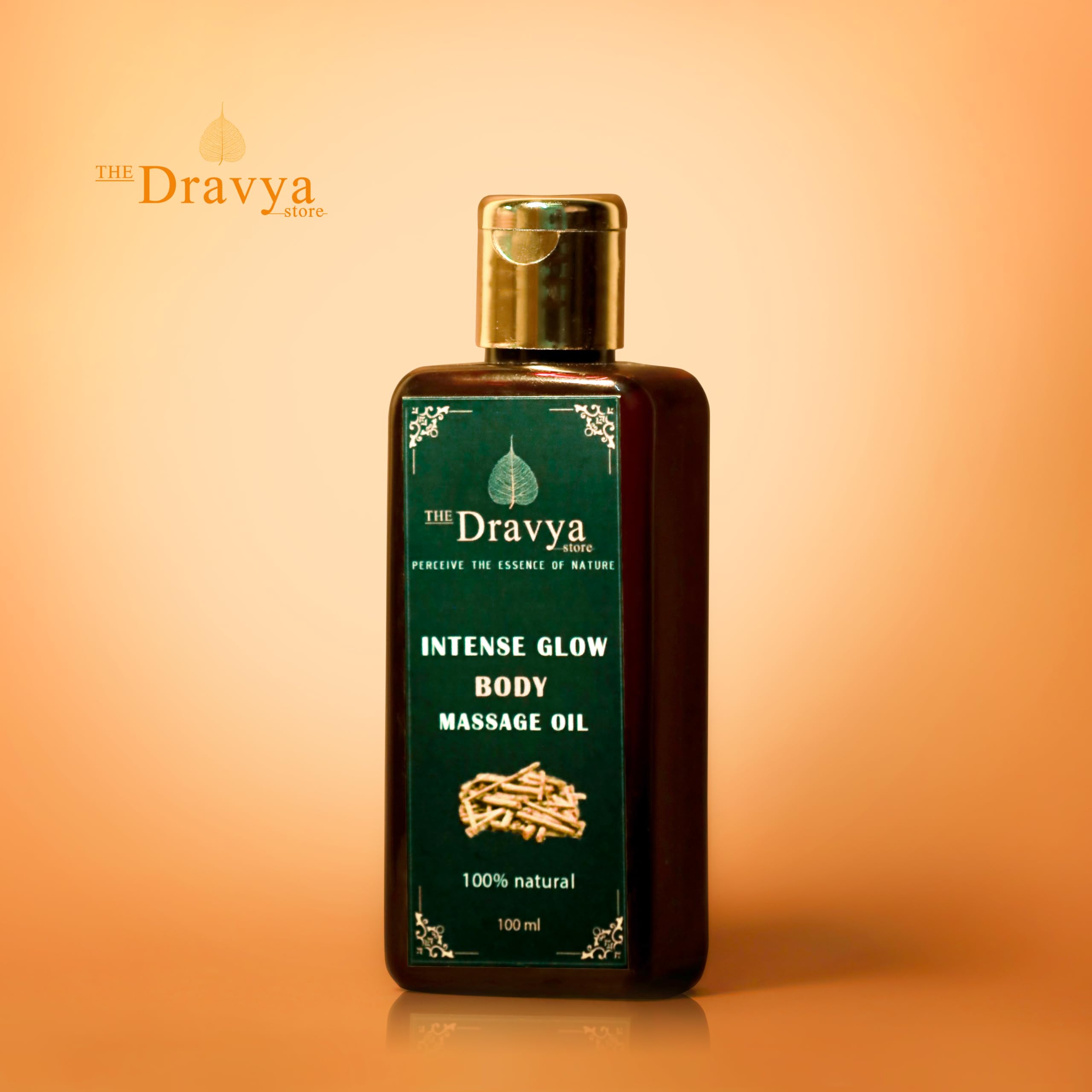 THE Dravya store BODY GLOW MASSAGE OIL (100ml) | Manjista cardamom| processed with cow milk| brightens skin | Intense Glow to skin