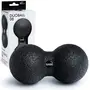 The BLACKROLL DUOBALL massage ball is the ideal tool for self-massage and body rejuvenation. Its purpose is to relieve muscle tension and reduce ligament sprains. The use of a massage ball reduces scar tissue adhesions and ligament sprains in the long run. Diameter 8 cm Intended for point deep muscle and tissue massage The distance between the two balls allows for a purposeful and effective massage around the spine and the Achilles tendon Improves muscle flexibility and efficiency For upper arm chest neck and calf muscle massage Intended for use on a table floor and wall Usage: Slowly roll BLACKROLLDUOBALL back and forth 6-8 times putting pressure on the ball thus improving blood circulation reducing muscle tension and ligament tension.