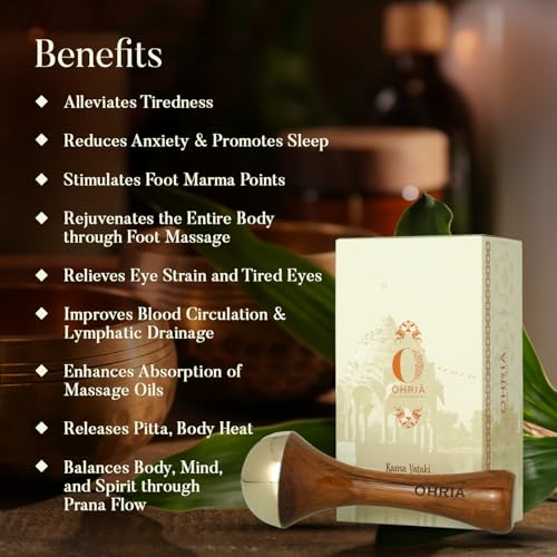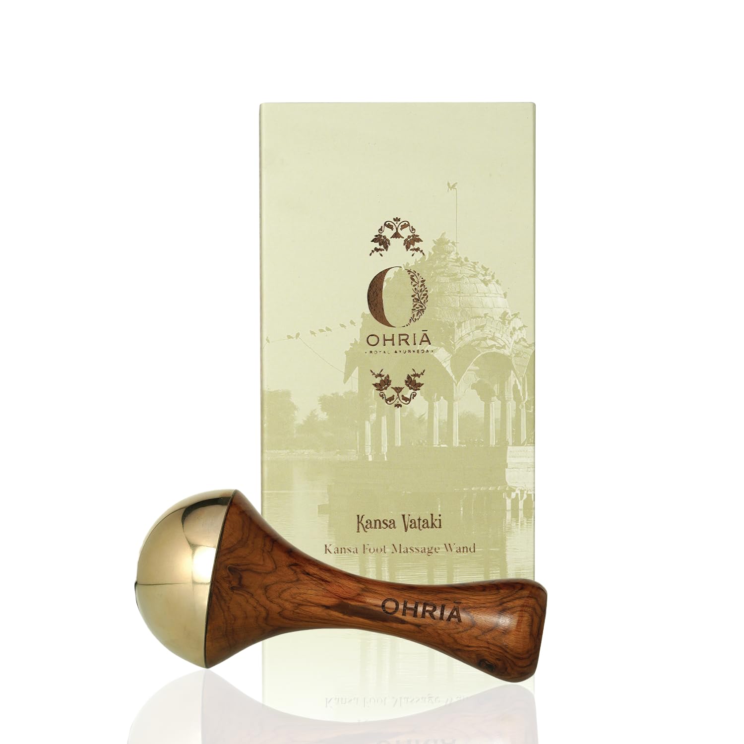 Ohria Ayurveda revives this age old traditional Ayurvedic massage tool Kansa- ¢healing metal from the Harappan culture. Comprising of a rich golden hue the medium size Kansa Vataki Healing metal¢ bowl top is specially designed for foot relaxation and is handcrafted upon a rosewood handle. Ohria Kansa Wand comprises of a blend of three metals in proportion as prescribed in Ayurveda. As Copper reduces pain & inflammation Enhances immunity and Tin reduces headache stress & insomnia.