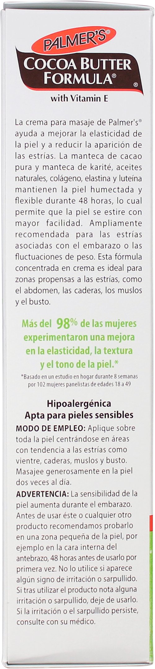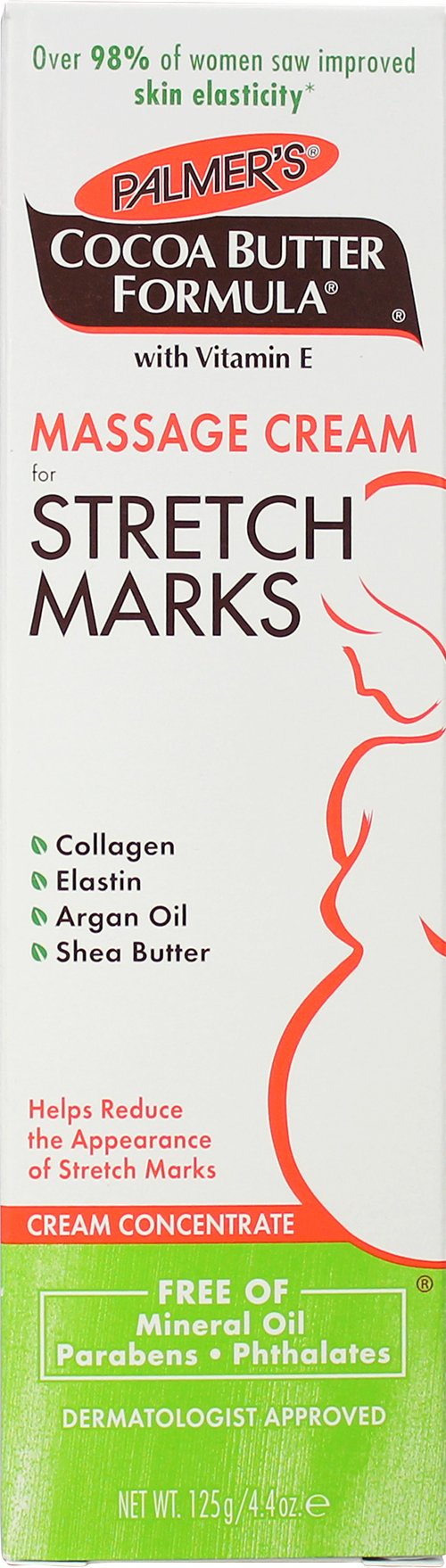 Nine out of ten pregnant women develop stretch marks at some point in their pregnancy. And aside from the belly thighs hips breasts and buttocks can all show signs of stretching. The cause? The collagen and elastin fibers that keep your skin firm and tight stretch and tear due to the pregnancy hormones and the pressure on your body from the rapid weight gain. While you cant prevent stretch marks you can help reduce their appearance with the support from Palmer's. Whatever product you choose - whether it's a stretch mark cream a stretch mark oil or a stretch mark lotion natural cocoa butter is safe to use on your body while pregnant and helps reduce stretch marks as you and your baby grow. Palmer's Massage Cream helps visibly improve skin elasticity and reduce the appearance of stretch marks. Pure Cocoa Butter Shea Butter Natural Oils Collagen Elastin and Lutein keep skin moisturized and supple for 48 hours allowing skin to stretch more easily. A pregnancy must have this everyday body cream is widely recommended for stretch marks during and after pregnancy. This non-greasy cream is ideal for all over body use in place of your regular skin moisturizer.