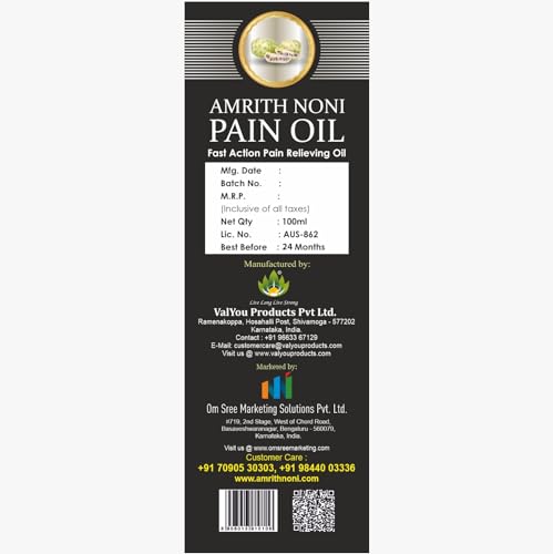 • Easy to Use : Gently massage the affected area with 5-6 drops or required amount of Amrith Noni Pain Oil. After half an hour give a hot pack with tolerably hot salt water.