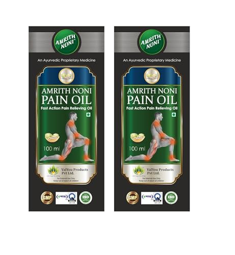 Amrith Noni Pain Relief Oil: Ayurvedic for Back, Joint, Knee, Body, Ankle, Muscle, Neck, Wrist, Elbow (100ML) - Pack of 2