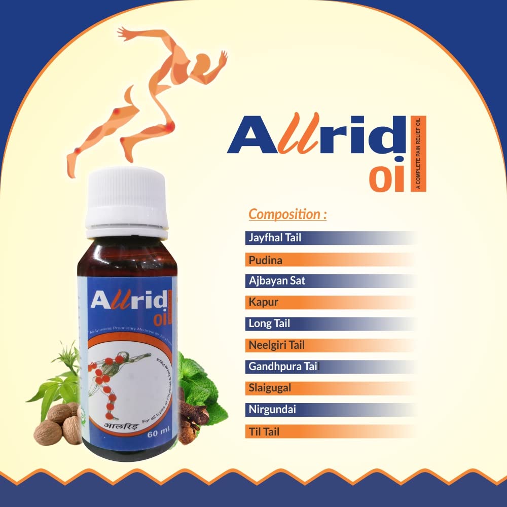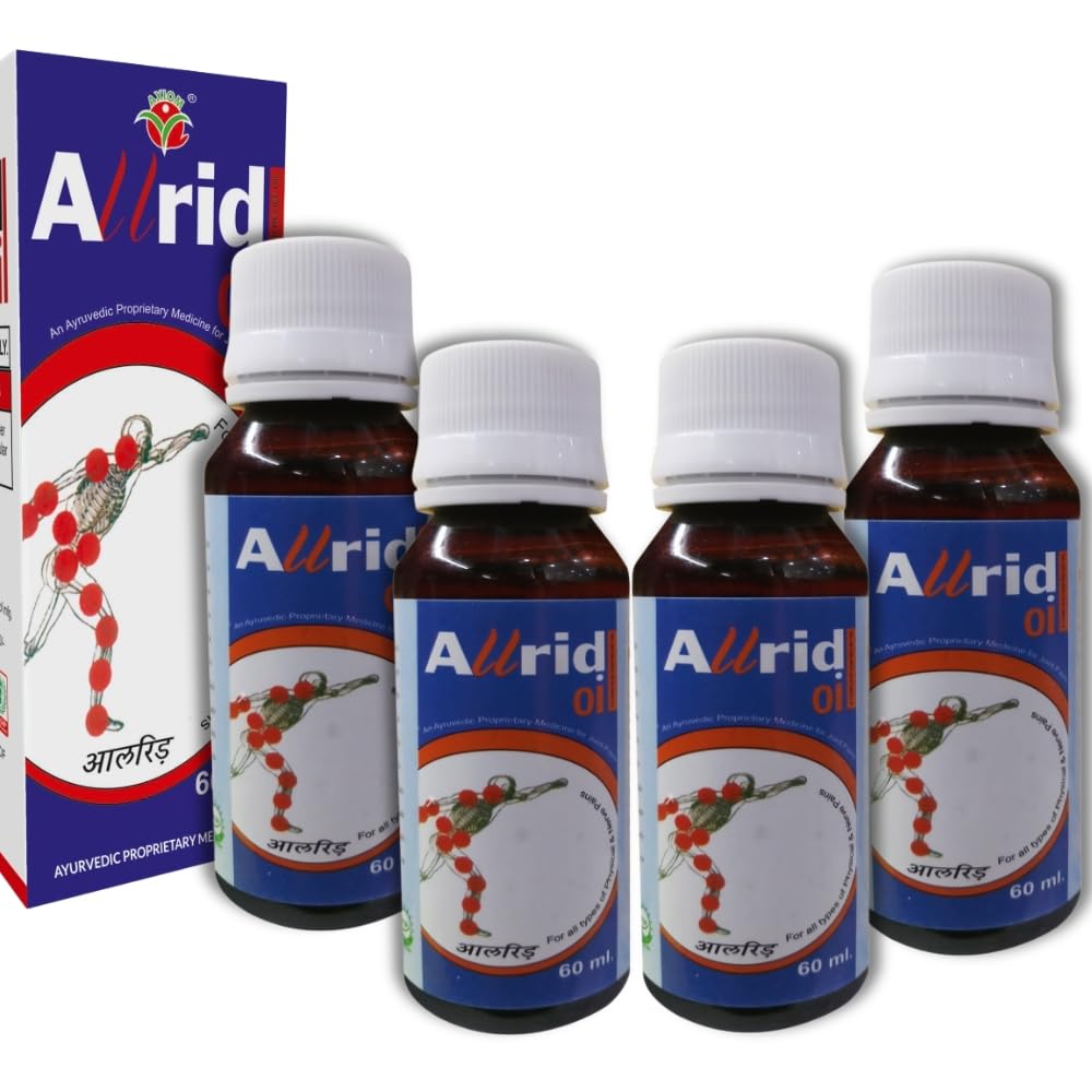 Axiom All Rid Oil - 60mL (Pack of 4) | Pain Relief Oil Helpful for Joints Pain Knee & Back Pain | Blend of 3 Powerful Herbs Pudina Kapur Neelgiri Tail | Ayurvedic Pain Relief Oil