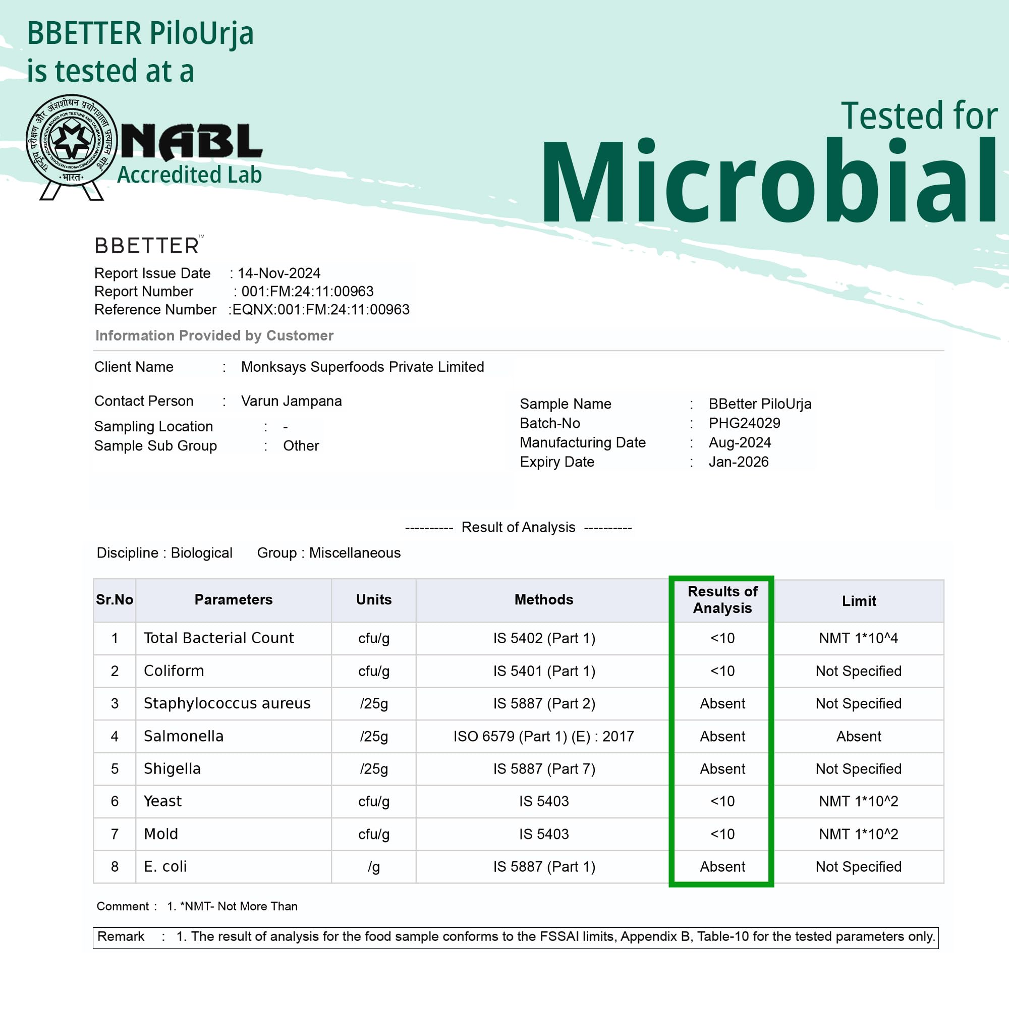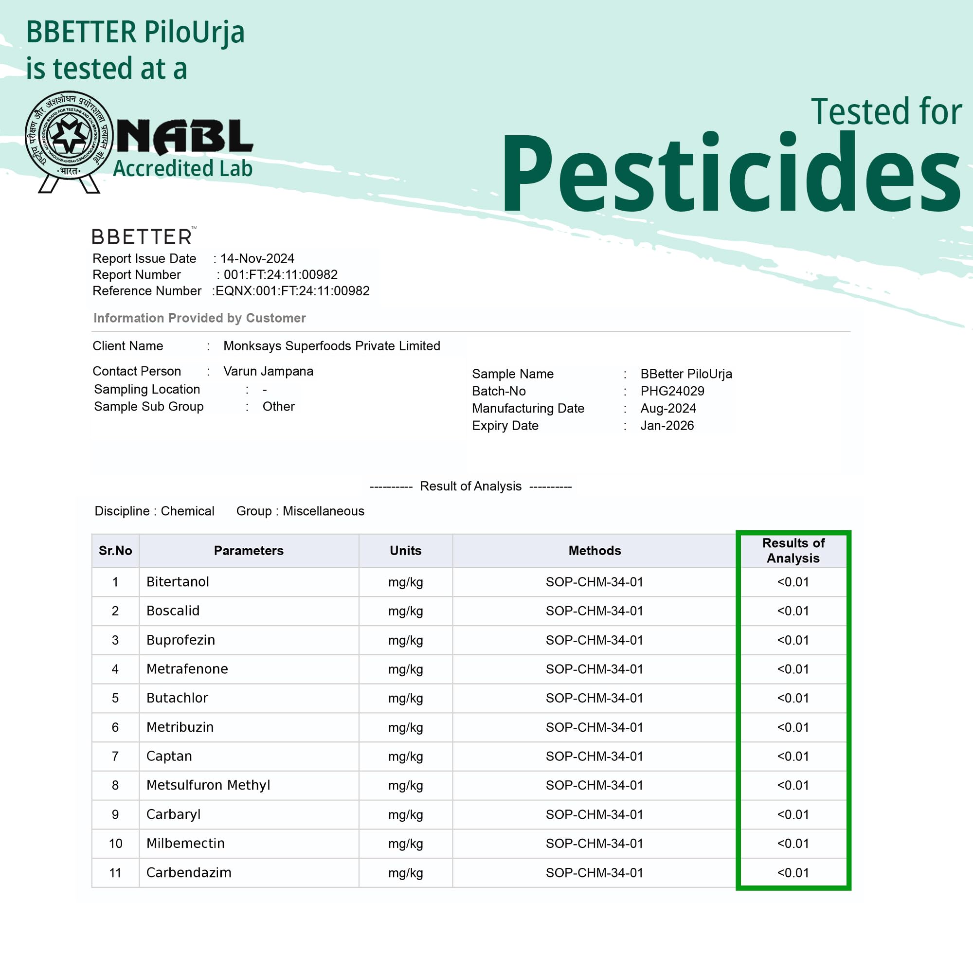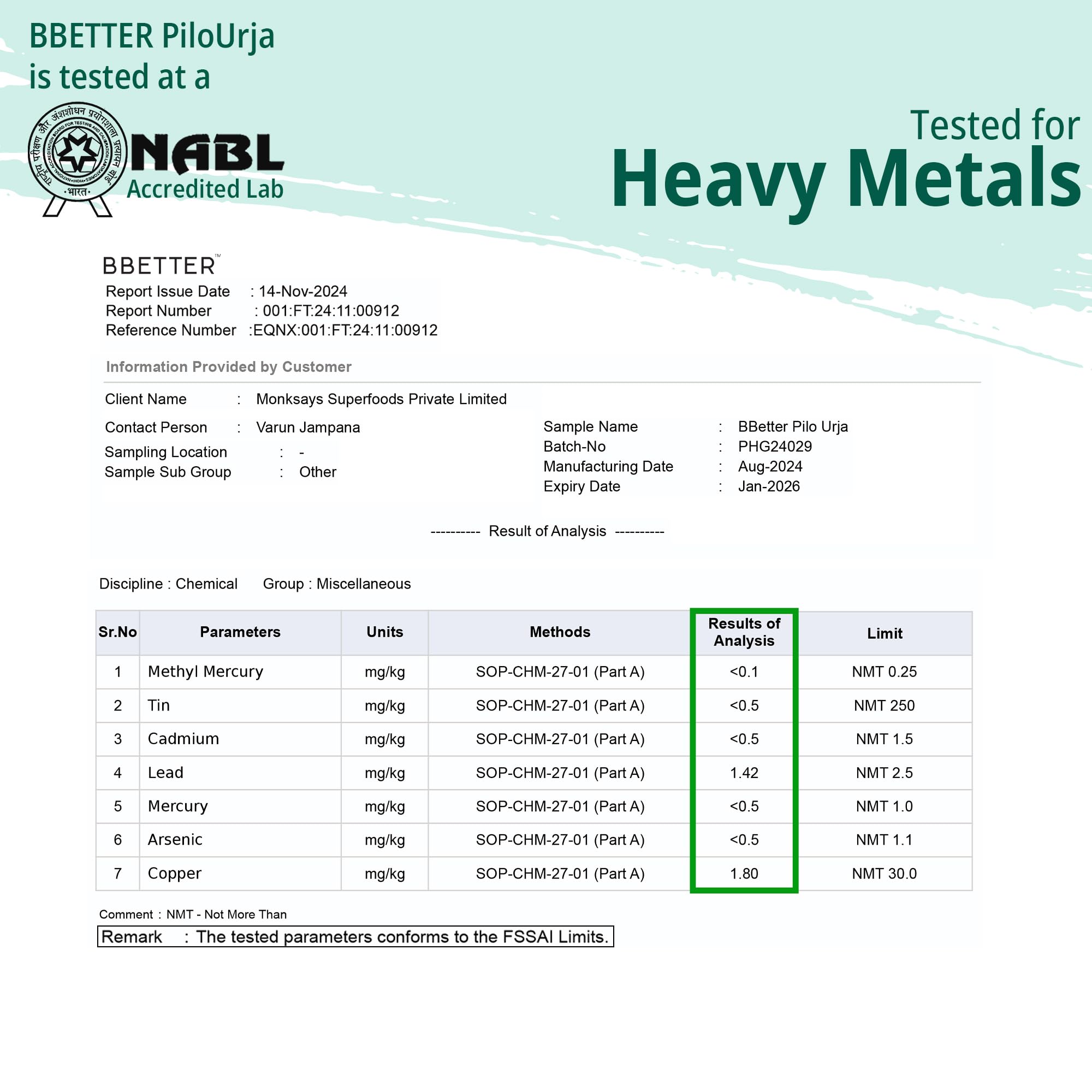 BBETTER PiloUrja has been thoroughly tested in NABL-accredited labs meeting all essential quality parameters to ensure its reliability and effectiveness.