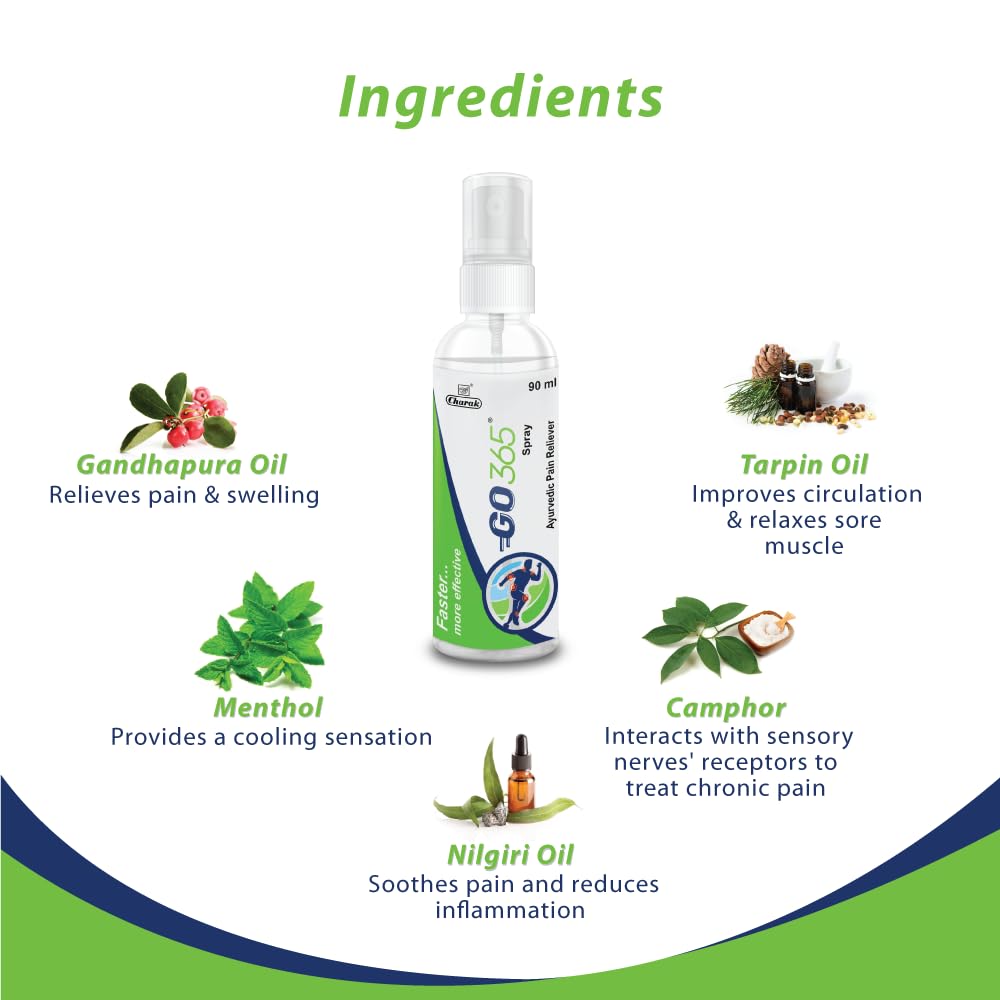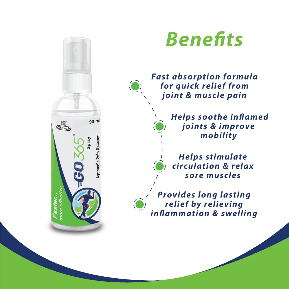 Charak Go365 Pain Reliever Spray | For Back Muscle Knee & Joint Pain & Stiffness | For Sports & Gym Injuries Each 90Gm (Pack Of 3)