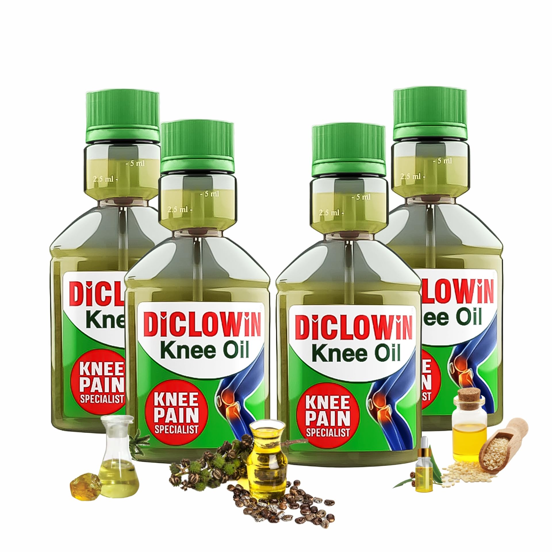 DiCLOWiN Knee Oil 60Ml | Provides Joint Knee Ortho Pain & Arthritis Relief with Deep Penetrating Action for Lasting Comfort & Mobility | Unique Bottle Non-Greasy Oil Effective Rich Aroma | Pack of 4