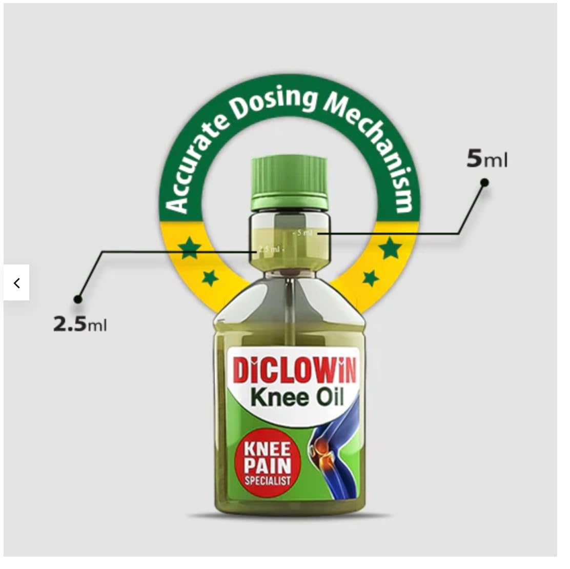 Diclowin Knee Oil is an innovative topical pain relief oil with unique accurate dosing mechanism in-built in the bottle and a patient information leaflet inside the pack.