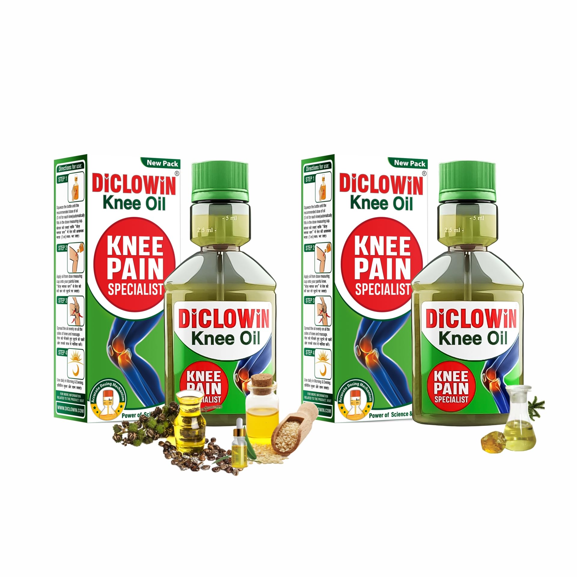 DiCLOWiN Knee Oil 60Ml | Provides Joint Knee Ortho Pain & Arthritis Relief with Deep Penetrating Action for Lasting Comfort & Mobility|Unique Bottle Non-Greasy Oil Effective Rich Aroma| Pack of 2