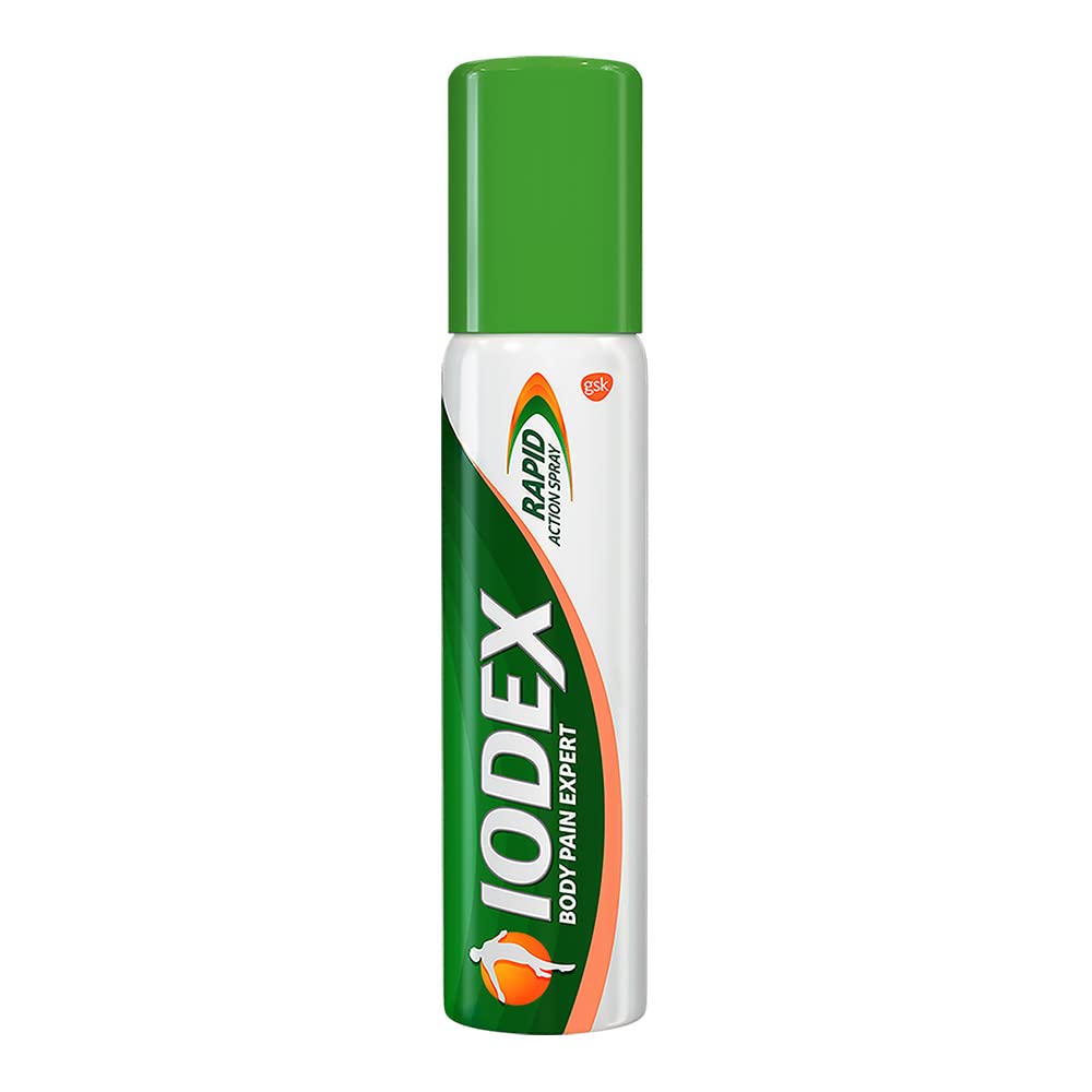 Iodex Rapid Action Pain Relief Spray is the latest offering from the house of Iodex- a trusted name in the Indian Household with more than 100 years of expertise in relieving different types of musculoskeletal pains. It is made of a powerful formula which consists of 5 active ingredients that penetrate deep into the skin reduce internal inflammation and provide targeted relief from different musculoskeletal pains such as back pain joint pain neck pain shoulder pain strain sprain and spasm. Iodex Rapid Action Pain Relief Sprayâs 5 active ingredients are Indian Wintergreen Menthol Clove Oil Eucalyptus oil Turpentine Oil. These ingredients possess analgesic and anti-inflammatory properties which on application reduce deep seated local pain and inflammation hence providing targeted relief from pain. On application Iodex Rapid Action Pain Relief Spray provides a dual sensation of cooling followed by long-lasting warming sensation of the affected area which gives a soothing effect. It is an Ayurvedic Proprietary medicine that can be used by all who are12 years and above. To apply hold the container about 5 cm from the skin and spray the affected area for 2-3 seconds 3-4 times a day. Do not spray near eyes or face. Store at ambient room temperature away from direct heat and sunlight.