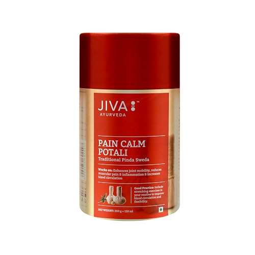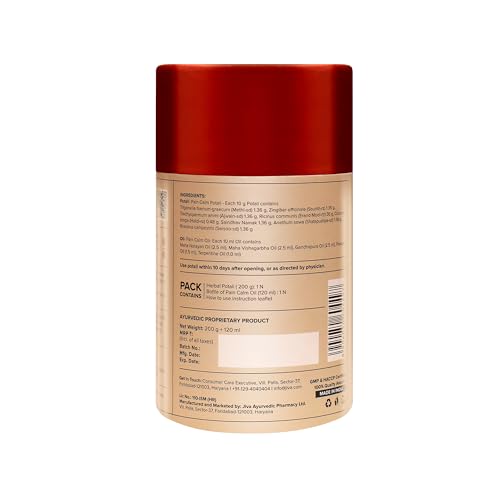 Jiva Pain Calm Potali 200g With Pain Calm Oil 120 ml | Alleviates Musco-Skeletal Pains | For Back Pain, Neck Pain, Knee Injury, And Shoulder Stress (Pack Of 1)