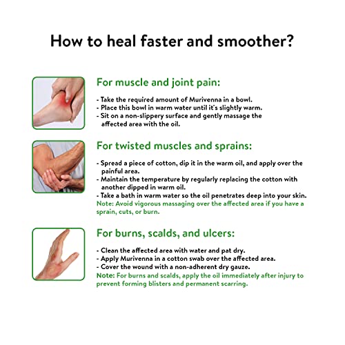 • Quick relief from sprain and cramps- Ease your sprain and cramps with Kerala Ayurveda Murivenna. This ayurvedic oil infused with the powerful herbs Tambula and Sigrupatra provides fast and effective relief for sprains strains and muscle spasms.