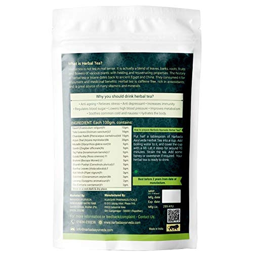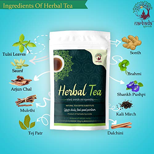 Narbada Ayurveda Herbal Tea | Stress Reliever | Immunity Booster | Cold and Cough | Soar Throat | Acidity Relief - 100 g