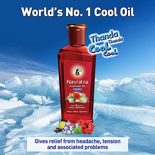 Navratna Ayurvedic Cool Oil | Combination of 9 Ayurvedic Herbs | Relieves Headache, Body ache, Tiredness, Sleeplessness & Tension| Improves Scalp Health | Relaxing & Rejuvenating cooling effect, 300ml