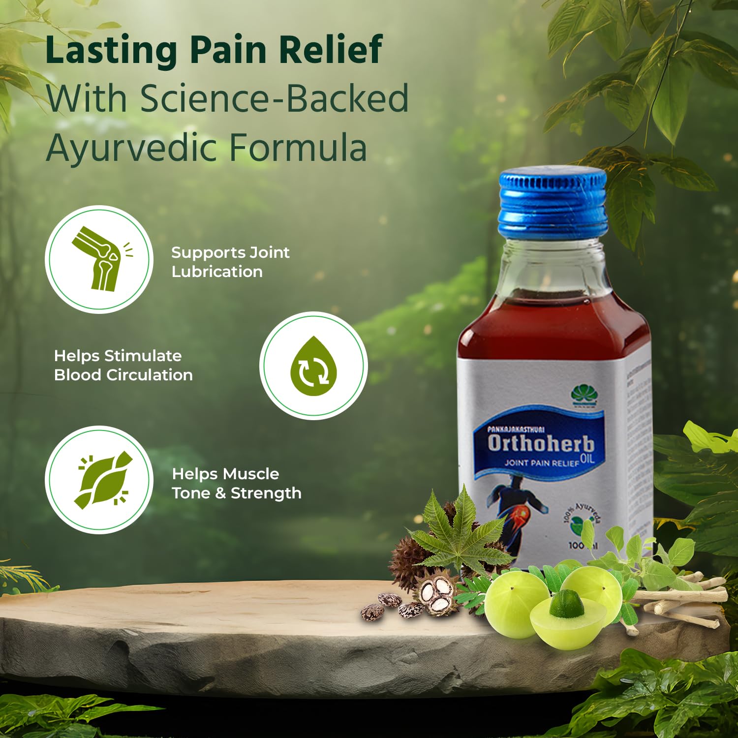Pankajakasthuri Orthoherb Oil Ayurvedic Pain Relief from Joint Muscle Back Pain Sprains Sports injuries reducing Inflammation and Sciatica - 100ml