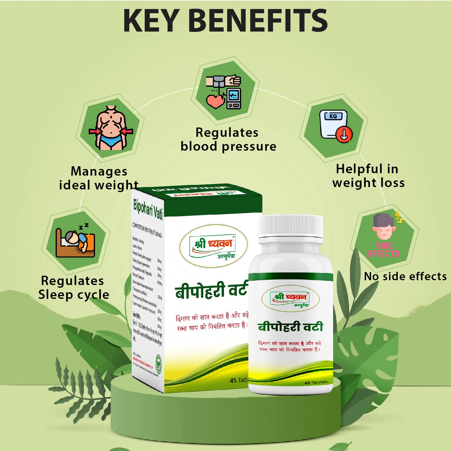 This medicine will help you stabilize your blood pressure levels and keep your heart healthy. This will help you cure Blood pressure heart disease and significantly reduce other factors which may cause the same. Bipohari Vati will help you even heal other related issues which comes along with high blood pressure such as insomnia nervousness and chest pain.