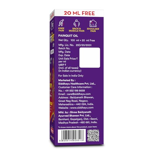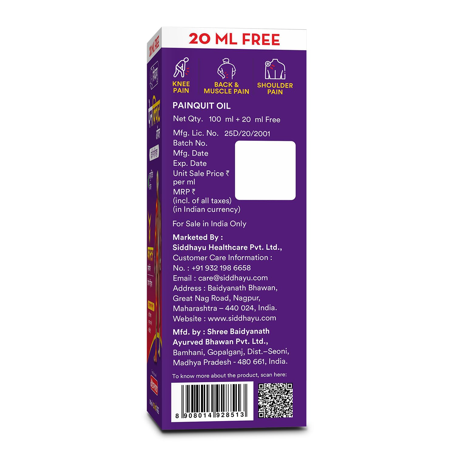 Siddhayu Painquit Oil (From the house of Baidyanath) I For Joint And Muscular Pain I Pain Relief Oils I 120 Ml + 30 Ml Extra