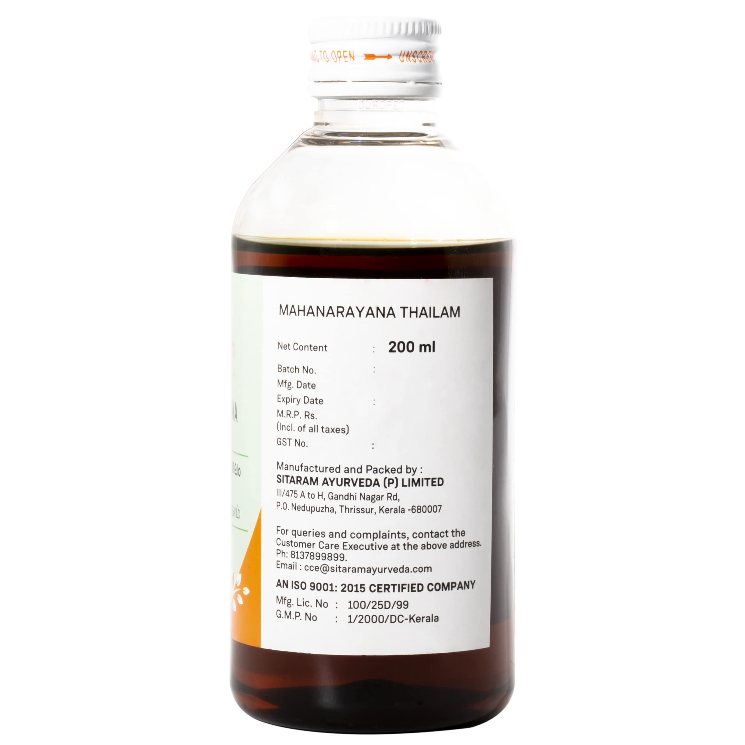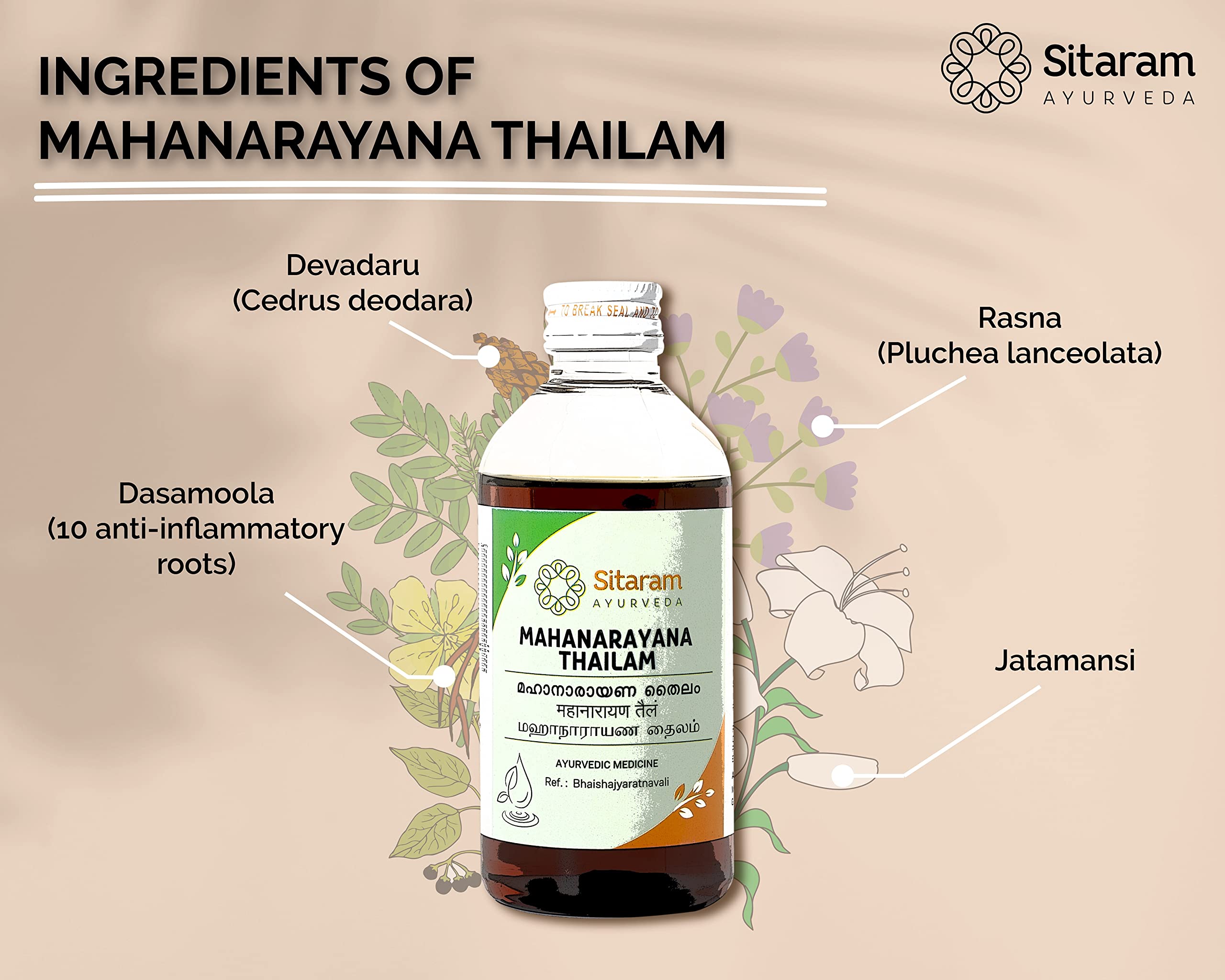 Sitaram Ayurveda Mahanarayana Thailam 200ml | Kerala Ayurvedic Mahanarayana Oil | Strengthens Nerves And Muscles | Reduces Inflammation.