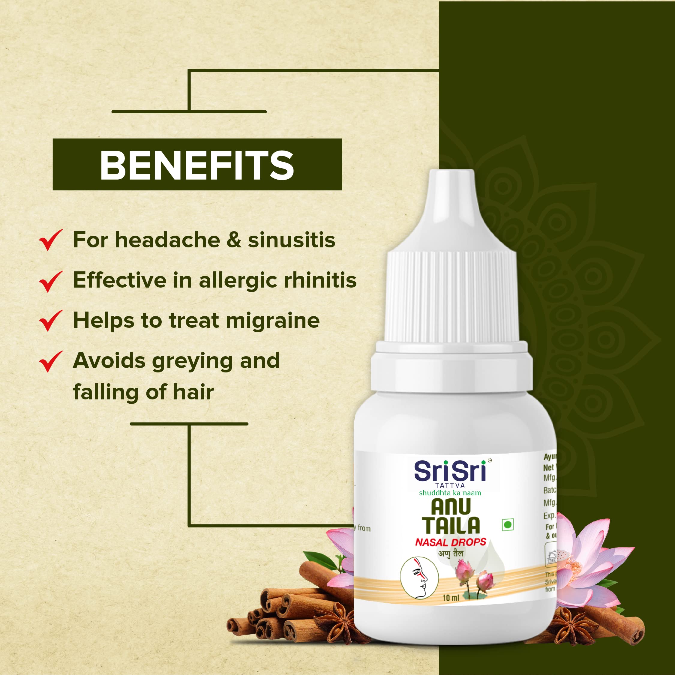 Anu Taila is an Ayurvedic mixture that opens up the nasal passage and assists in relaxation stress relief and respiratory system strengthening.