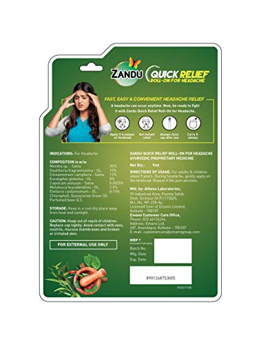 A headache can occur anytime. Now be ready to fight it with Zandu Quick Relief Roll-On for Headache. It comes from the house of Zandu to provide you the trust of quality and relief for your headache. Its combination of Eucalyptus & Menthol gives you Fast Easy & Convenient Headache Relief. Now you can carry your Headache Relief in your pocket. The Power of Zandu Balm Now in a Roll-On.