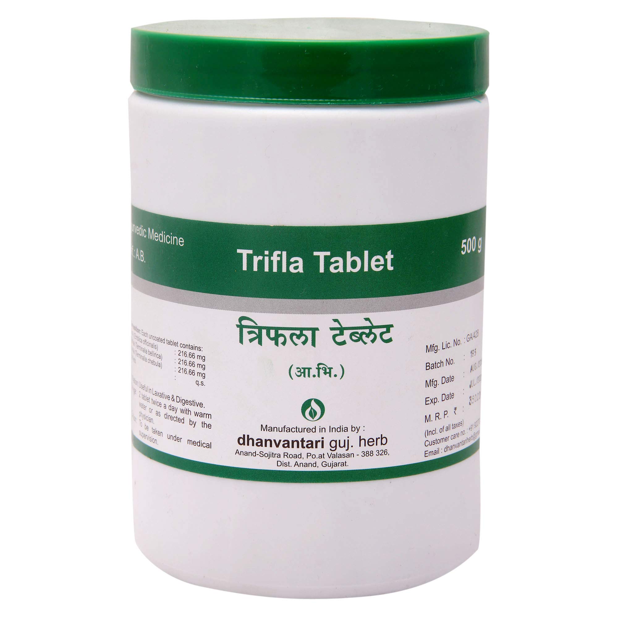 Product Dhanvantari Trifla Tablet-500 Gm is an effective herbal medicine useful in ayurvedic treatment - For dosage / Usage kindly refer the package information.