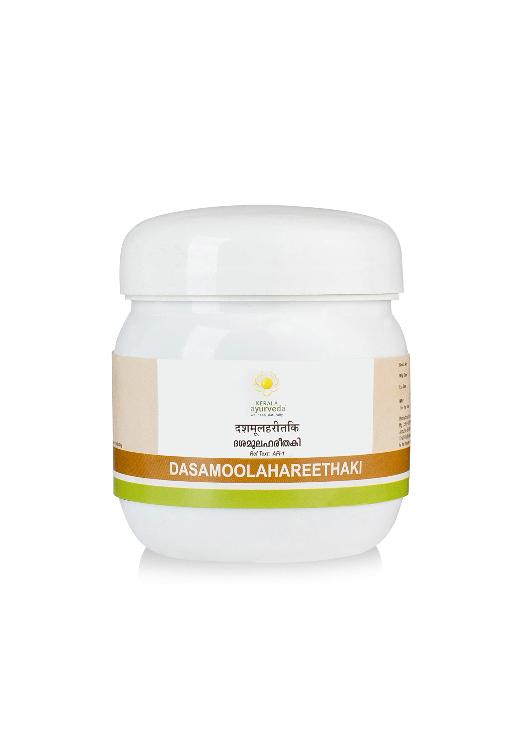 A formulation in Lehyam form Dasamoolahareethaki is beneficial in chronic inflamtory conditions associated with swelling. The intake of this mediciine aids releff from fever rheumatoid arthritis bleeding disorders urinary infection anemia and livr disorders. The nourishing ingredients in Dasamoolahareethaki helps gain body weightt and hence beneficial in emaciation. It also supports healthy bowel movements and helps promote appetite.