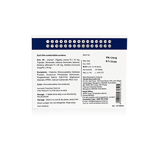Ingredients: Each I-CLEARTM 10D tablet contains Extract of Jhandu* (Tagetes erecta Fl.) 10 mg TriphalaHaridra Excipients q.s