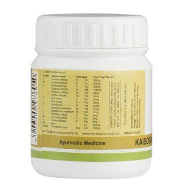 Kaisoravatakam is a classical Ayurveda formulation in tablet form effective in various skin disorders and rheumatism. It helps relieve various types of skin disorders including Psoriatic arthritis. The anti-inflamtory properties of the ingredients in Kaisoravatakam make it beneficial in the treatment of ulcers carbuncles and rheumatism. Kaisoravatakam also helps in alleviating the symptoms related to the fistula.