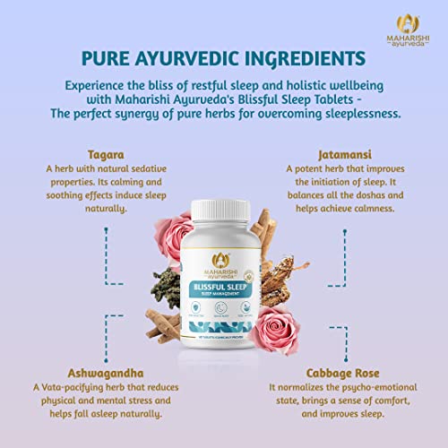 "Nothing compares to the natural good night's sleep that you get as soon as you hit the bed. Troubled sleep cycles stress and strain are quite common these days due to hectic and ambitious lifestyles. Maharishi Ayurveda Blissful Sleep is a clinically researched formulation for sleep issues (Department of Psychiatry University of California). The formulation is made from 10 powerful herbs & minerals like Jatamansi Tagara (scientifically known as Valeriana Wallichii) Ashwagandha & Cabbage Rose. Each of these ingredients acts independently as well as synergistically to correct the root cause and address issues such as Disturbed sleep Anxiety and Stress. It is a 100% natural and chemical-free non-habit-forming Ayurvedic medicine that works by bringing the imbalanced Vatta and Pitta doshas into balance. It helps improve sleep quality and reduces the time taken to fall asleep. Maharishi Ayurveda Blissful Sleep will help you wake up refreshed each day naturally without any harmful side effects. "